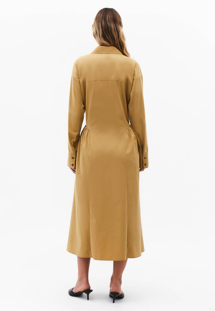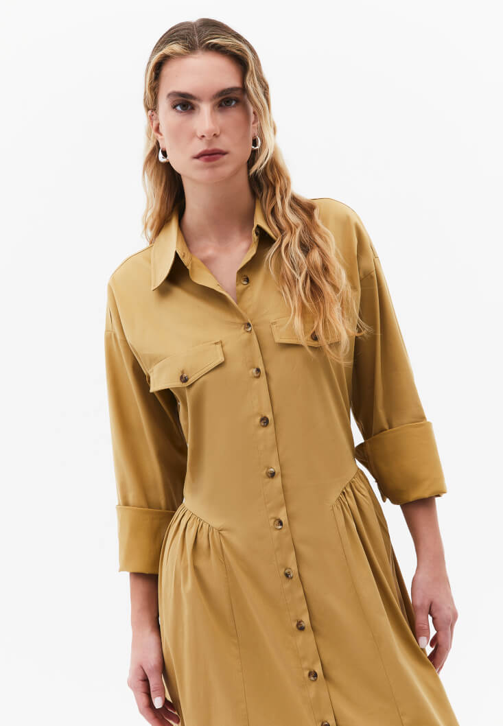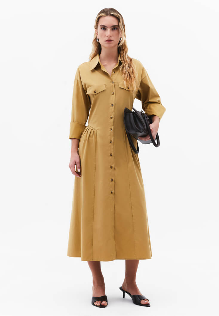 • Bayan Sarı Uzun Gömlek Elbise