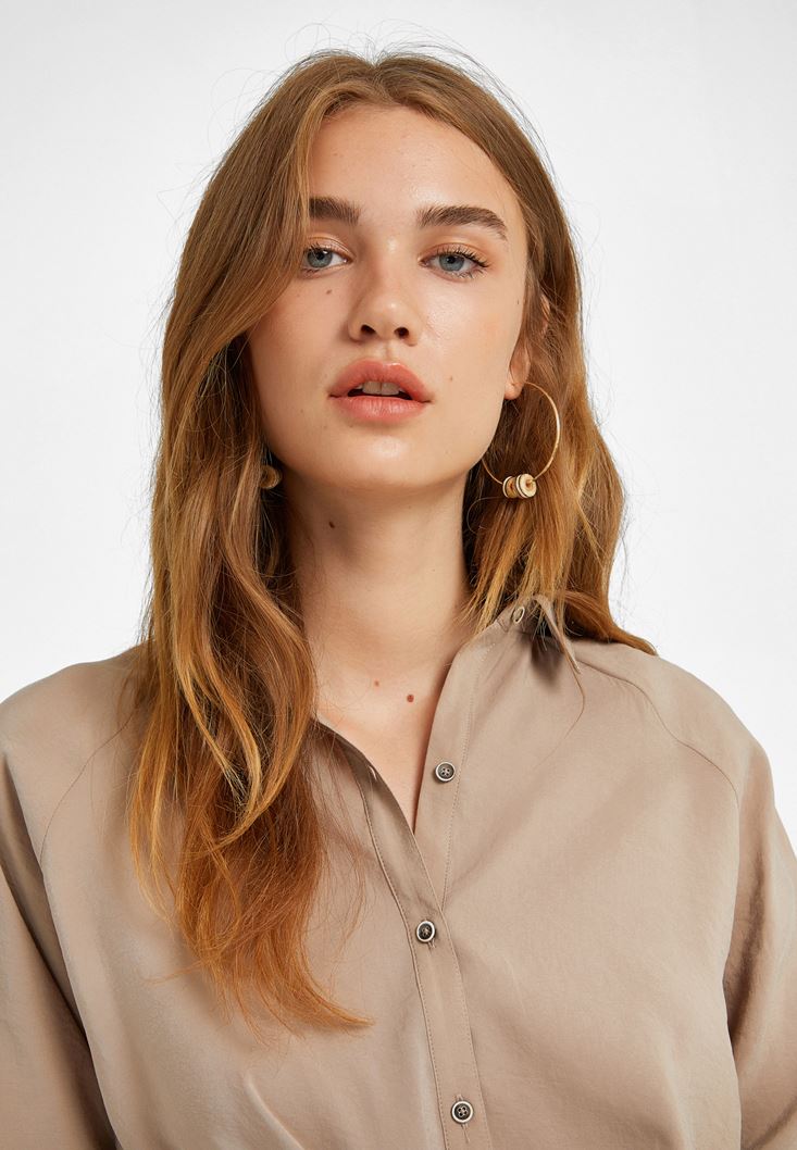 Bej Uzun Kollu Bağlama Detaylı Gömlek ( MODAL )