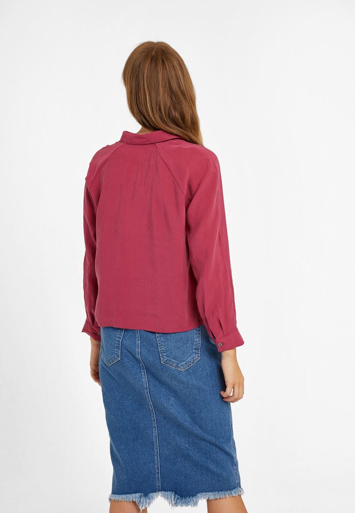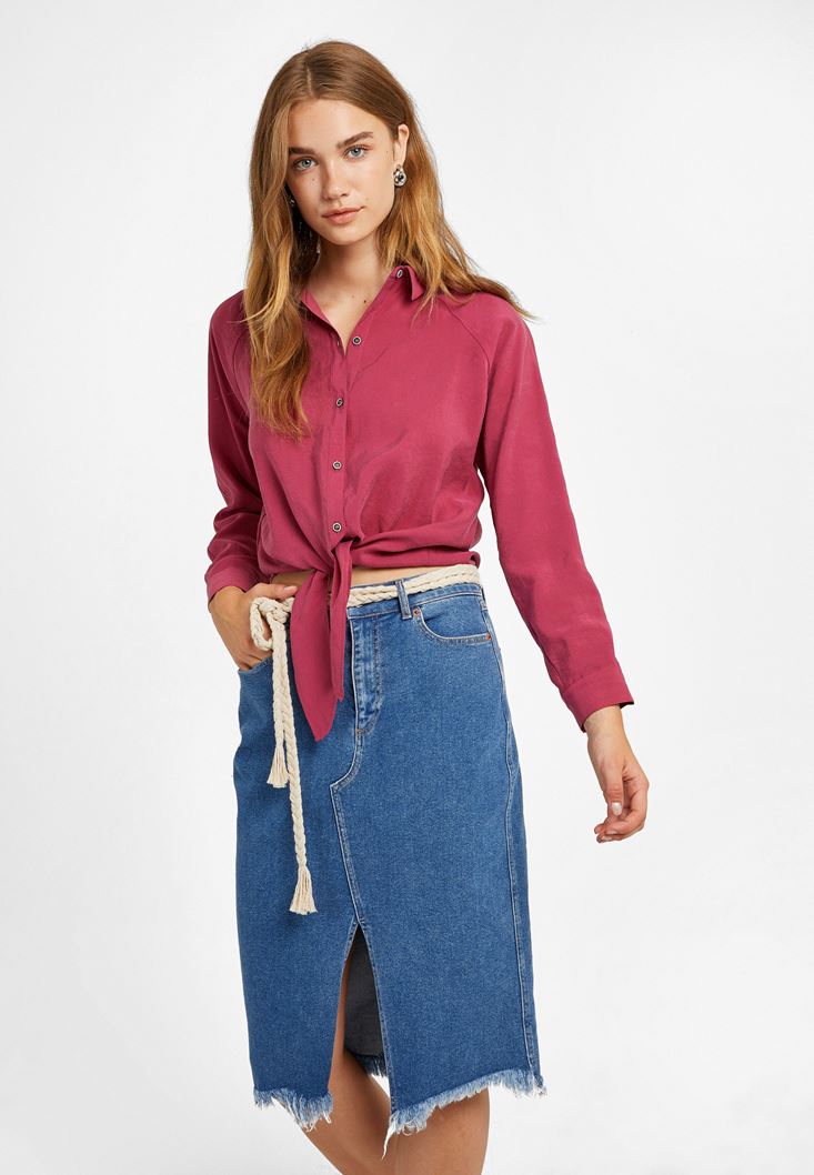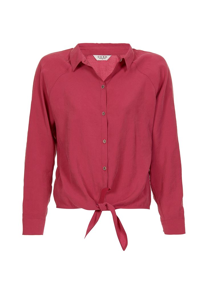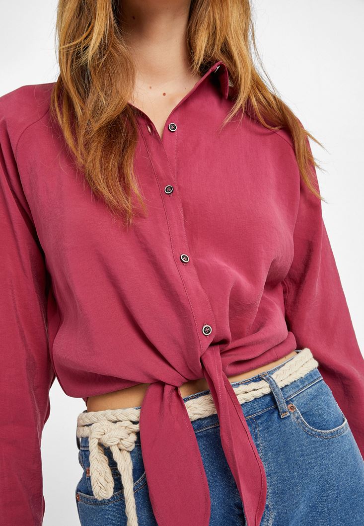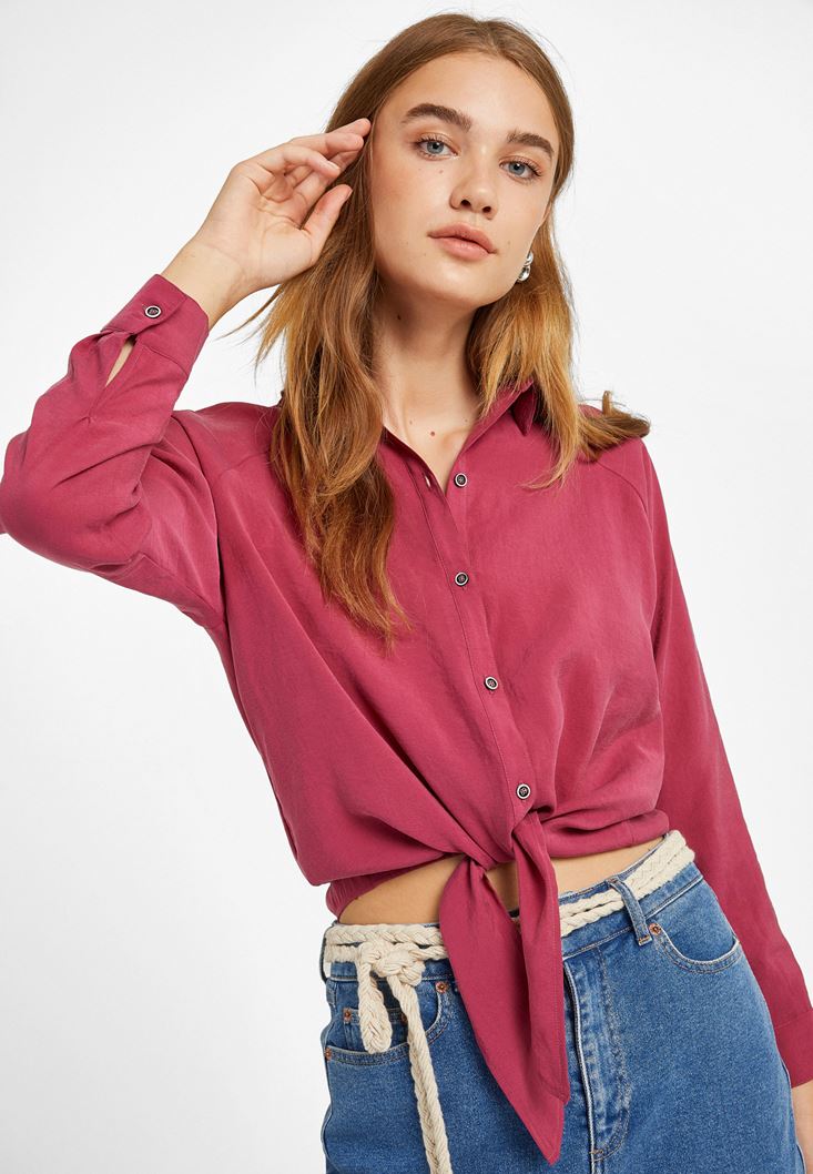 Pembe Uzun Kollu Bağlama Detaylı Gömlek ( MODAL )