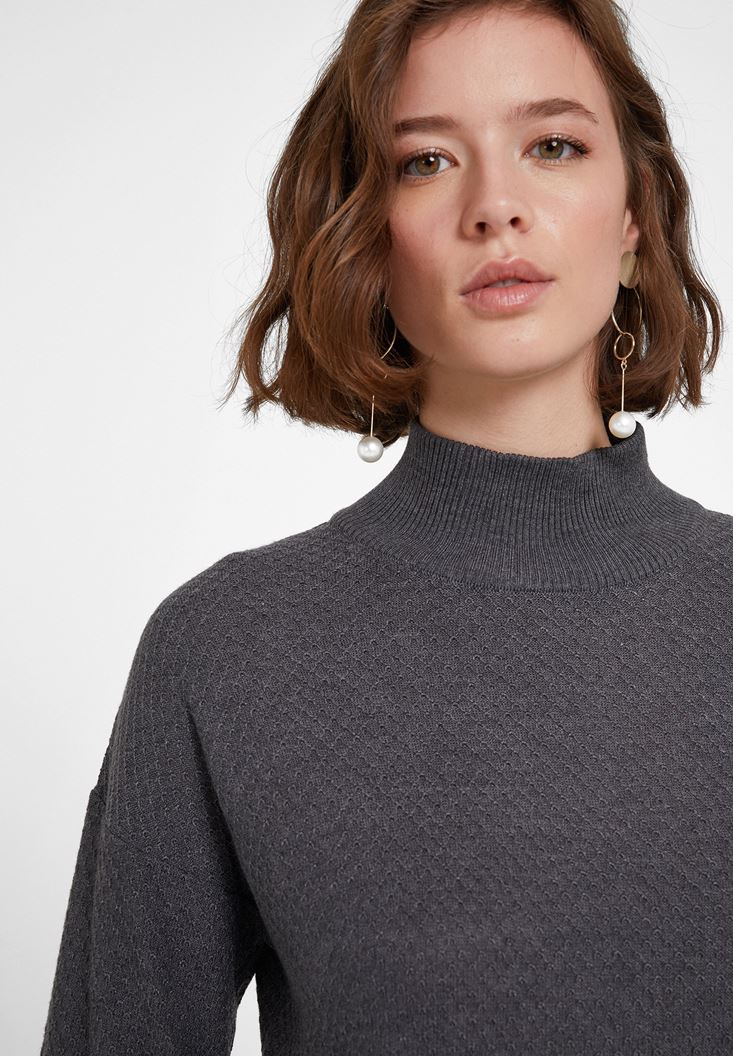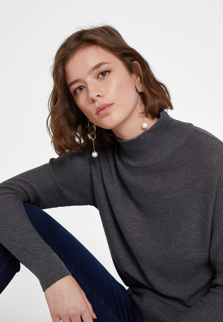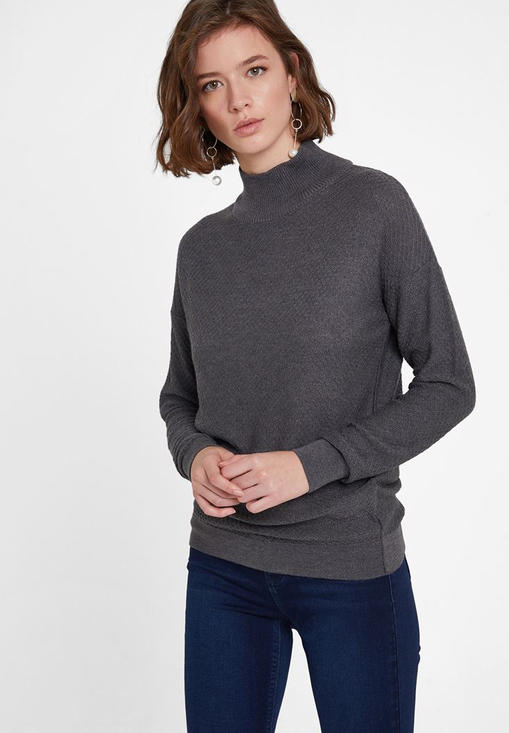 • Bayan Gri Uzun Kollu Balıkçı Yaka Triko