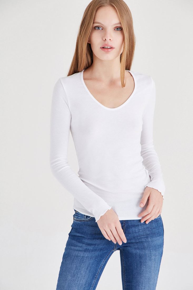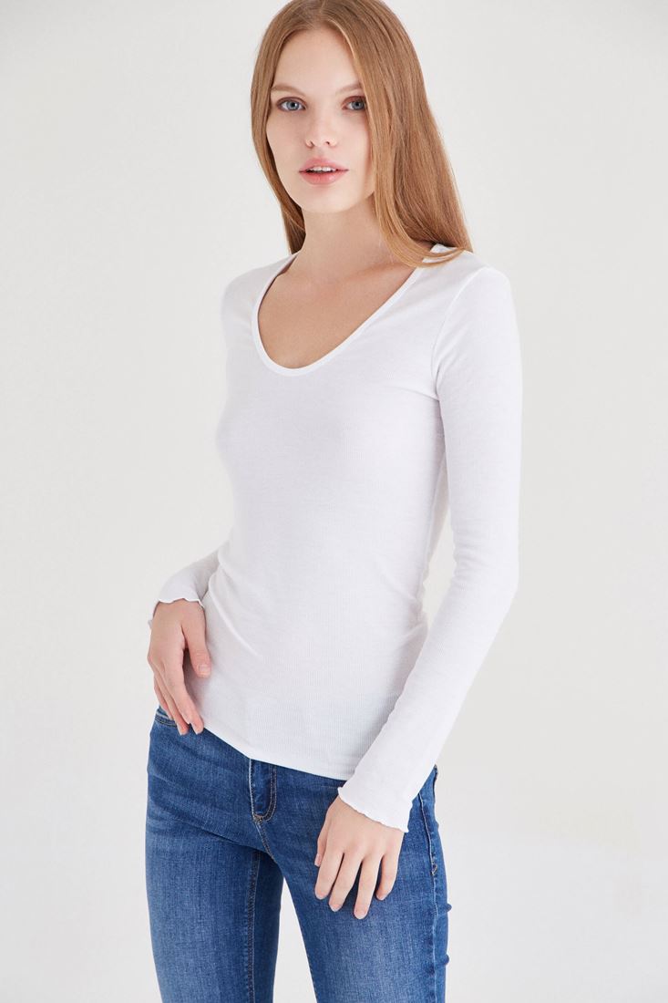 • Bayan Beyaz Uzun Kollu Basic Tişört