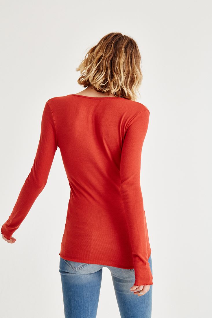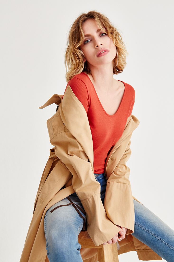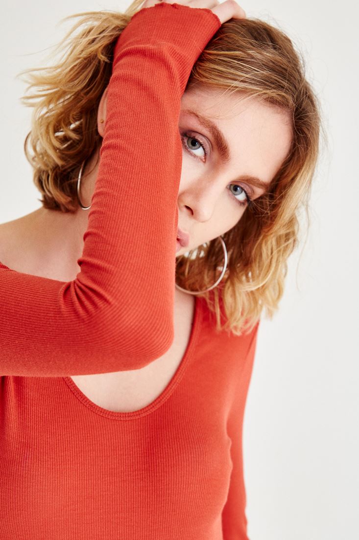 • Bayan Turuncu Uzun Kollu Basic Tişört