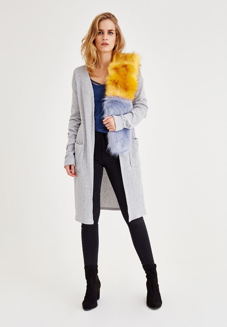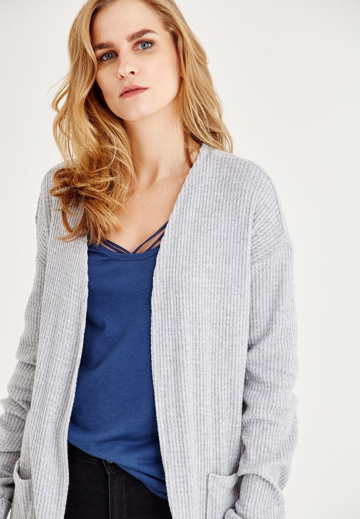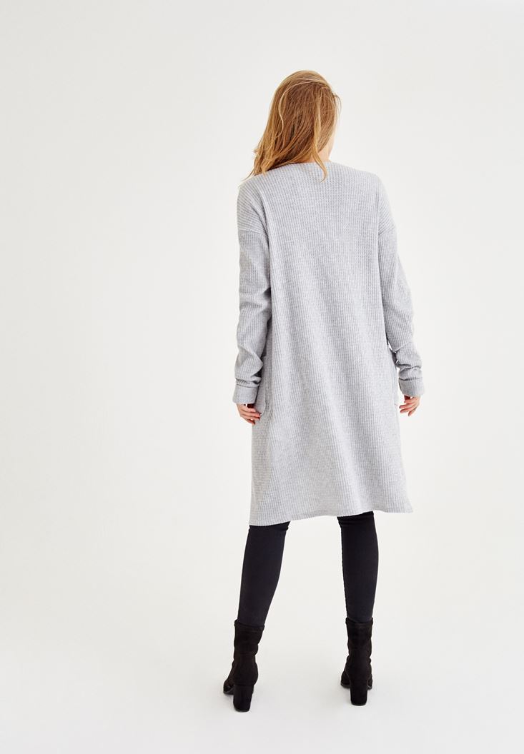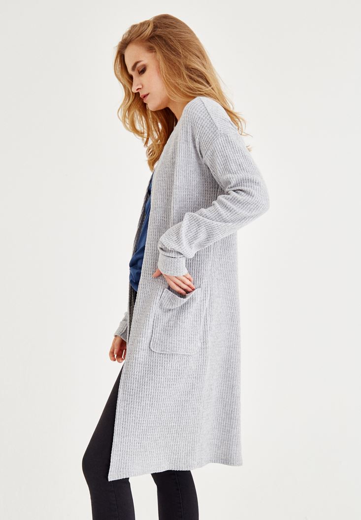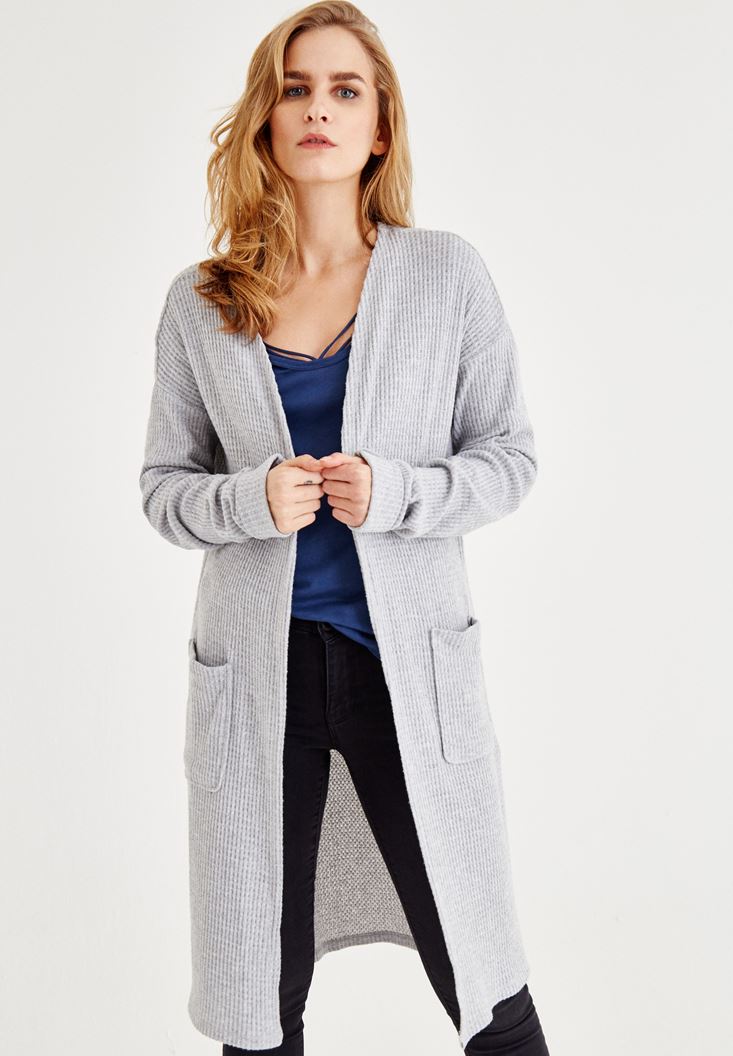 • Bayan Gri Uzun Kollu Cepli Hırka