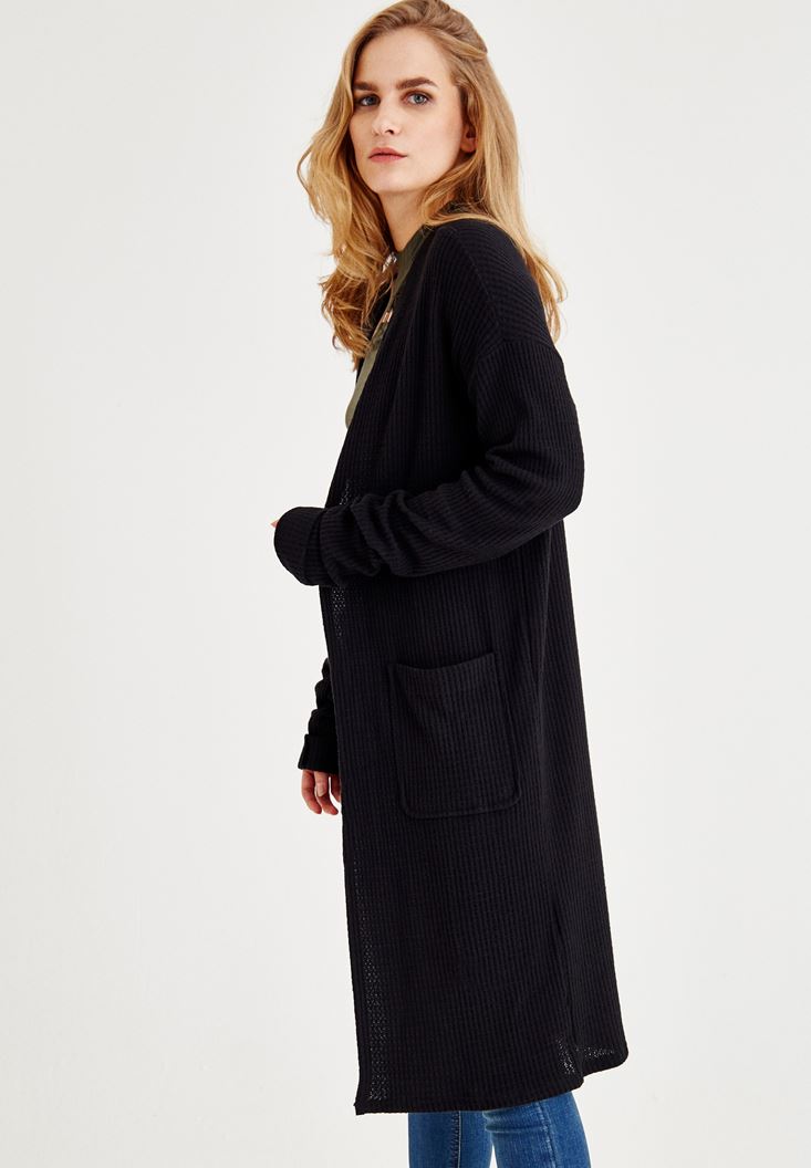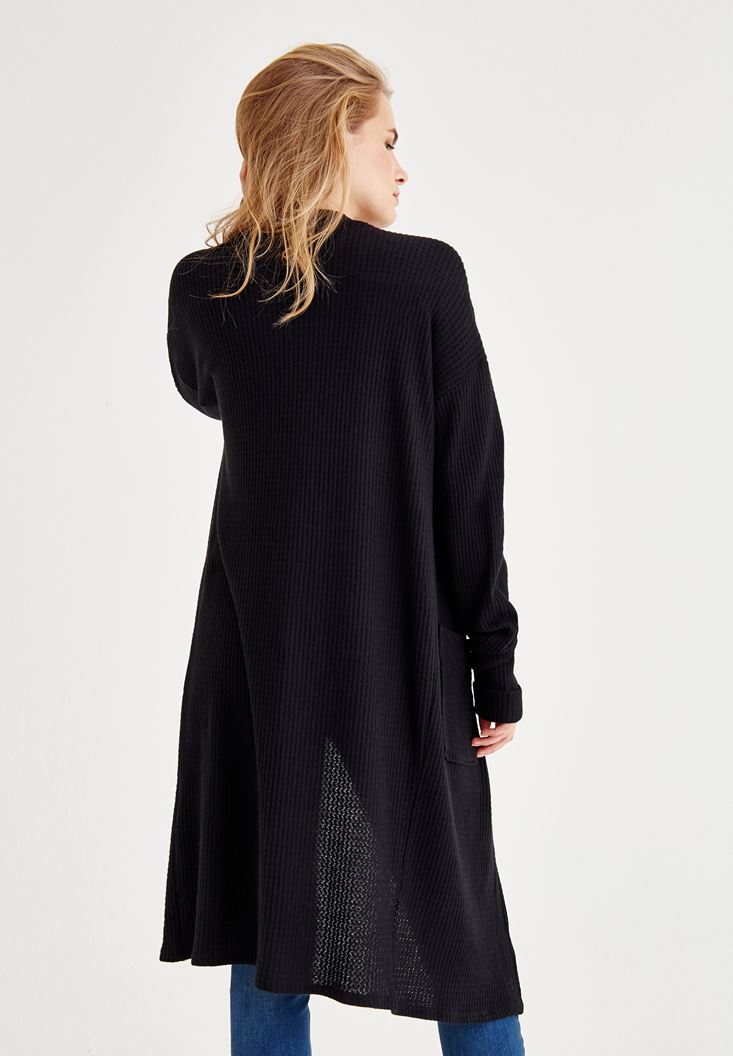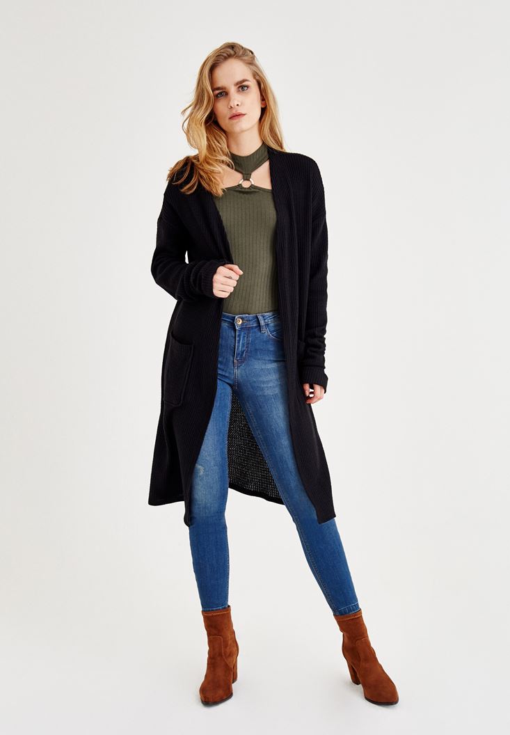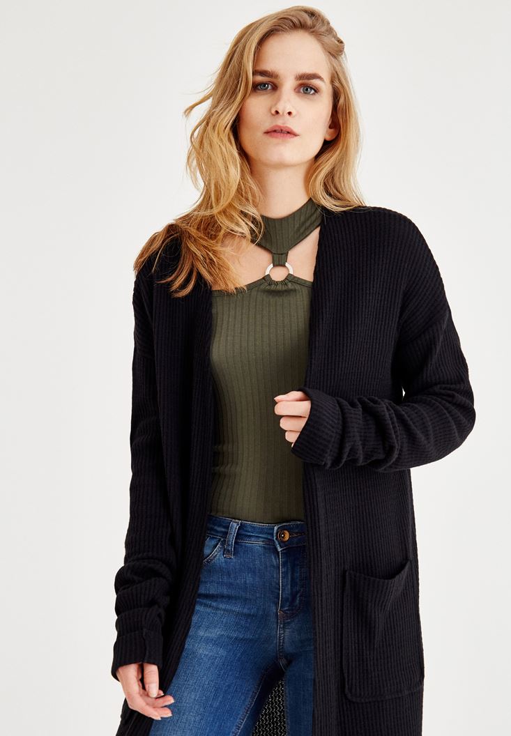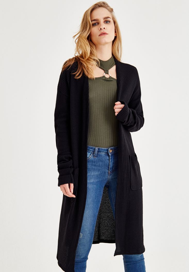 • Bayan Siyah Uzun Kollu Cepli Hırka