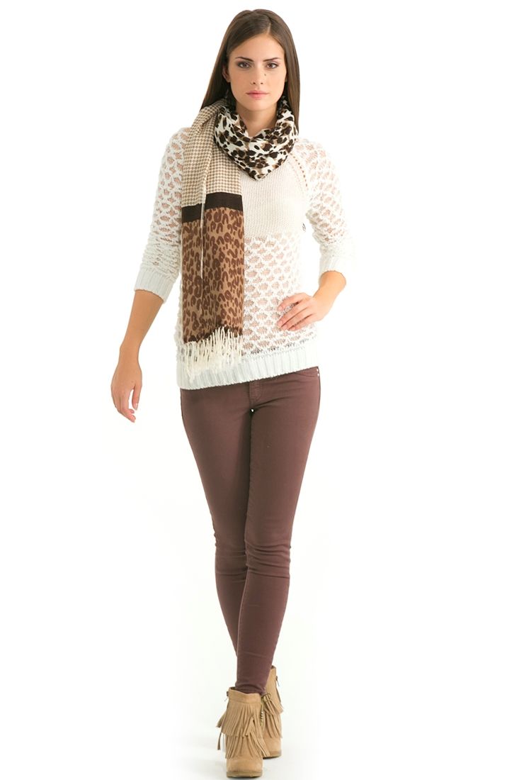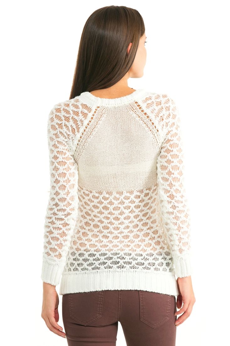 • Bayan Krem Uzun Kollu Delikli Kazak