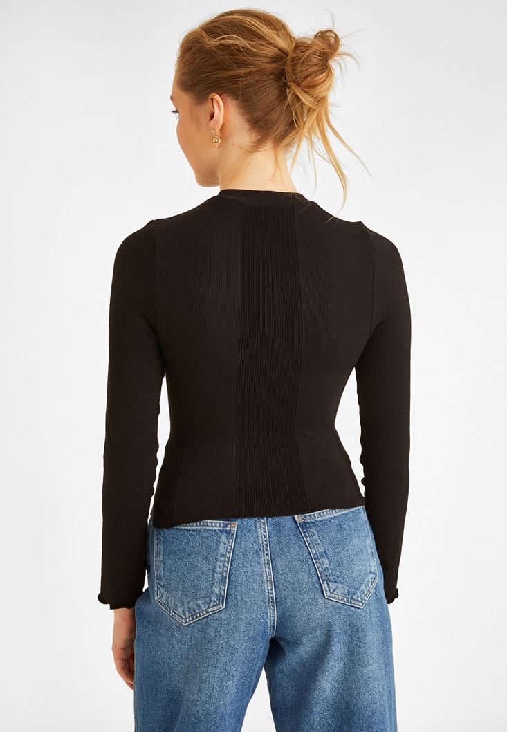 • Bayan Siyah Uzun Kollu Dikişsiz Tişört