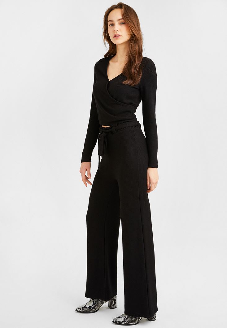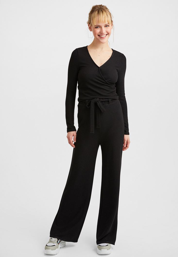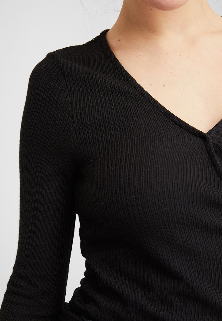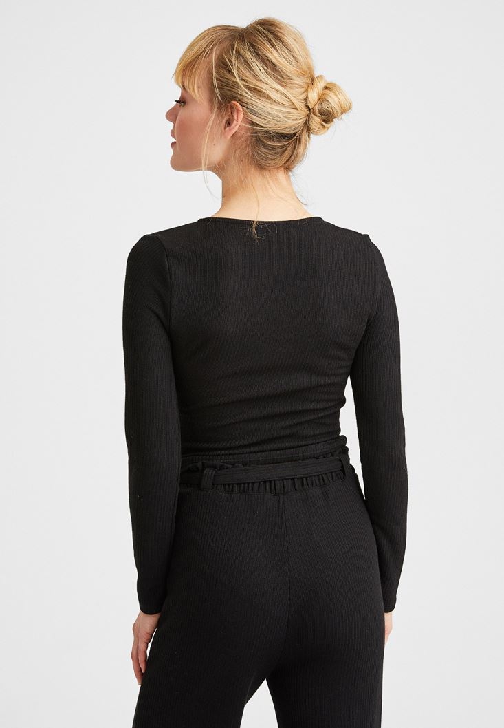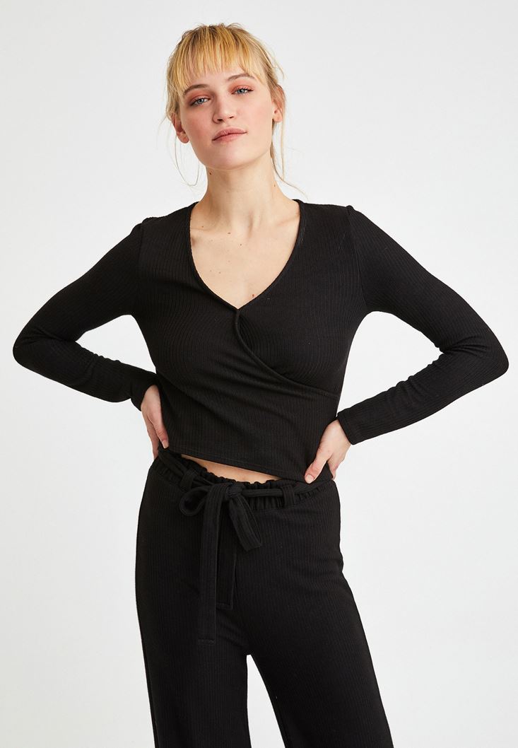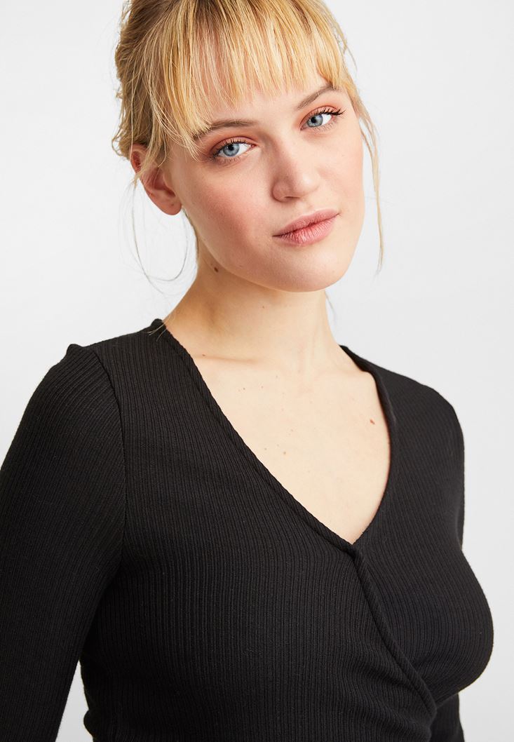 Siyah Uzun Kollu Kruvaze Bluz