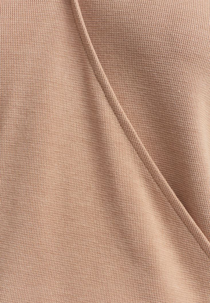 Özel doku ve bedenden uzak rahat kalıp, kruvaze yaka, bel ve kol ucu lastikli.