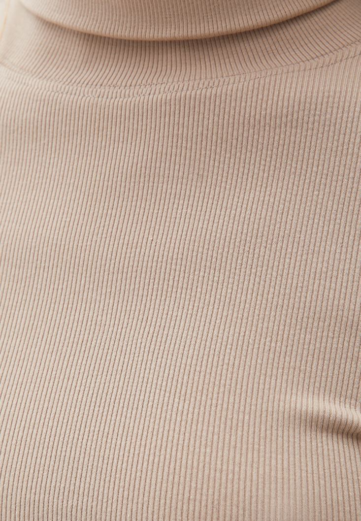 Pamuk karışımlı özel doku, bedeni saran esnek fit, balıkçı yaka form, uzun kollu, fitilli doku, standart boy.