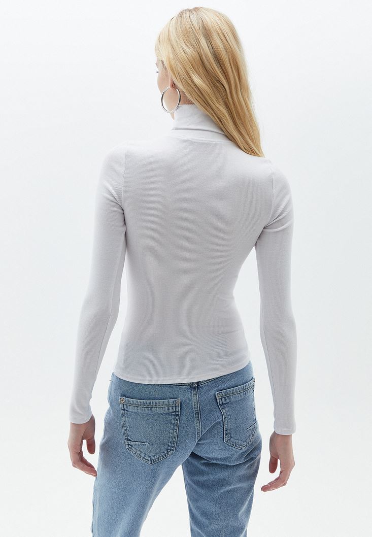 Beyaz Uzun Kollu Roll Neck