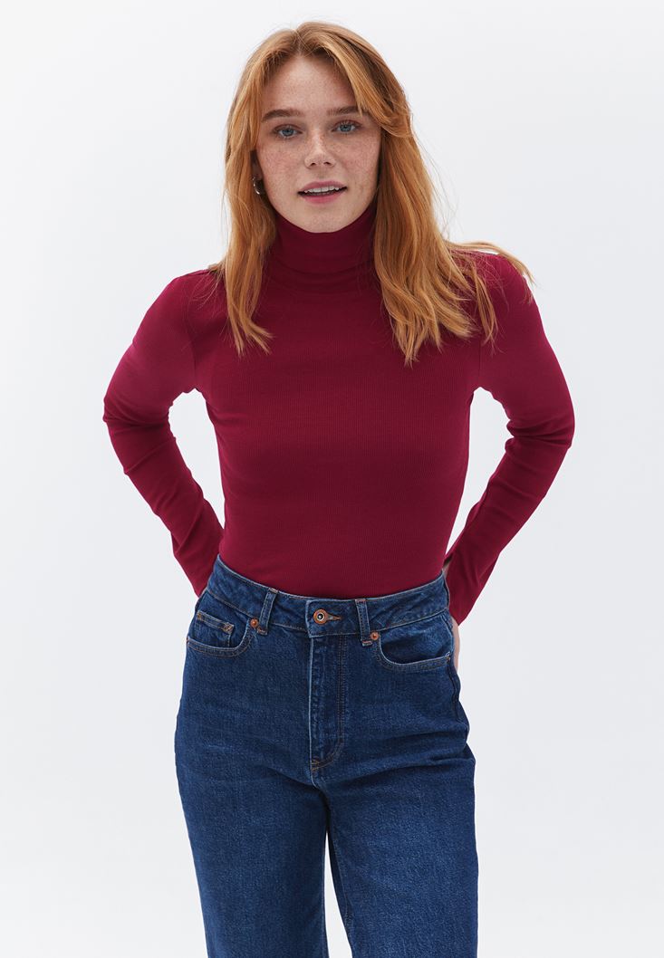 • Bayan Kırmızı Uzun Kollu Roll Neck