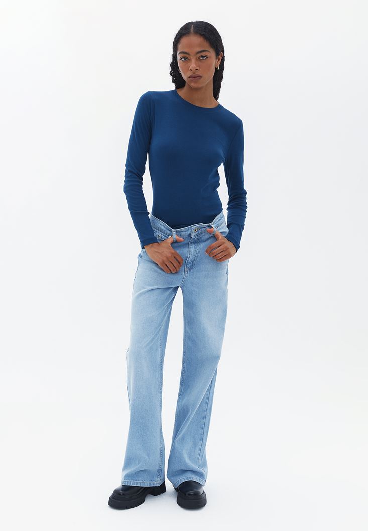 Uzun Kollu Tiişört ve Bol Paça Pantolon Kombini