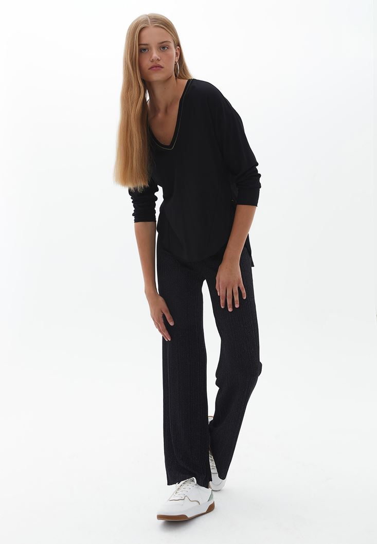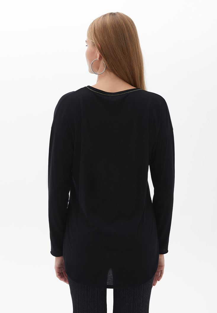 • Bayan Siyah Uzun Kollu V Yaka Tişört ( MODAL )