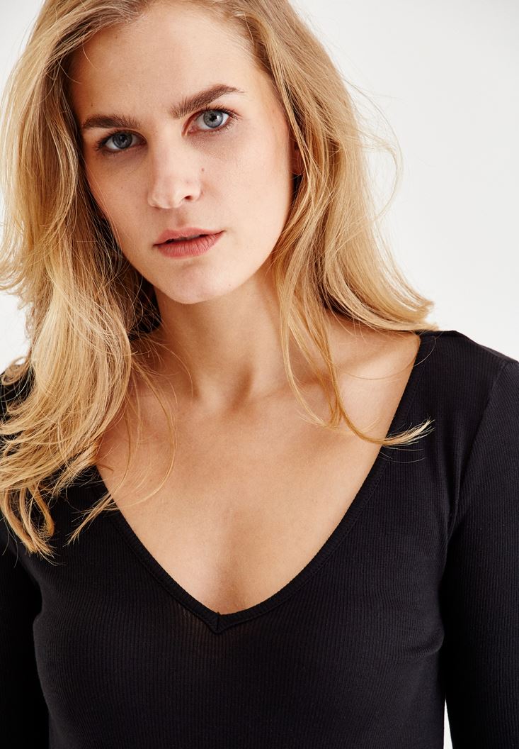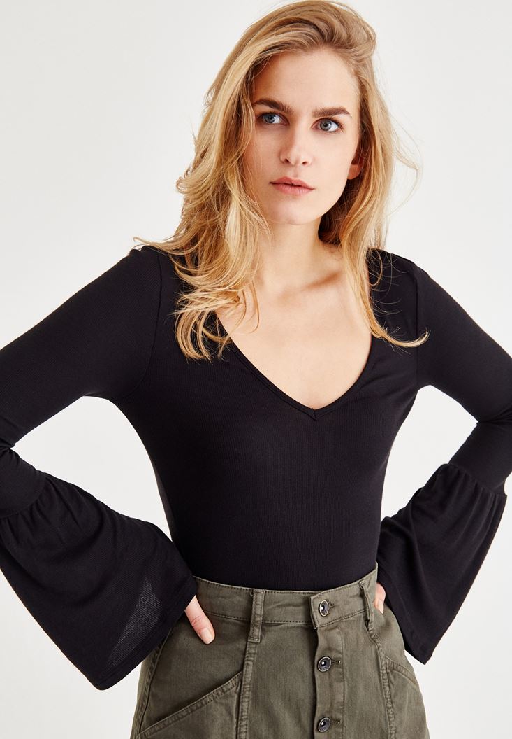 • Bayan Siyah Uzun Kollu V Yaka Tişört