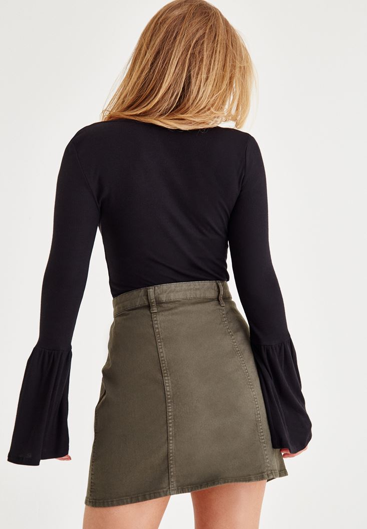 Uzun Kollu V Yaka Tisört modeli salas kol kesimi ve vücudu saran beden kesimi ile her zaman severek kullanacaginiz parçalardan birisi olacak. Derin V yaka kesimi ile hos bir boyun dekoltesi elde etmenizi saglayan tasarimin, dirsek altindan bollasan kol kesiminde yer alan salas firfir detaylar ile enerjinizi ön plana çikarabilirsiniz. Kayin agacindan elde edilen modal lifinin sundugu nem transfer etme özelligi ile konforlu bir kullanim sunan tisört modelleri arasinda yer alan tasarimi jean pantolon, sort, etek ve kumas pantolon modelleri ile birlikte kullanabilirsiniz. OXXO’nun kadinlardan aldigi ilhami yansitan tisört modelleri arasinda yer alan tasarima kombinlerinizde yer verirken tarziniza uygun aksesuarlar seçerek sikliginizi tamamlayabilirsiniz.