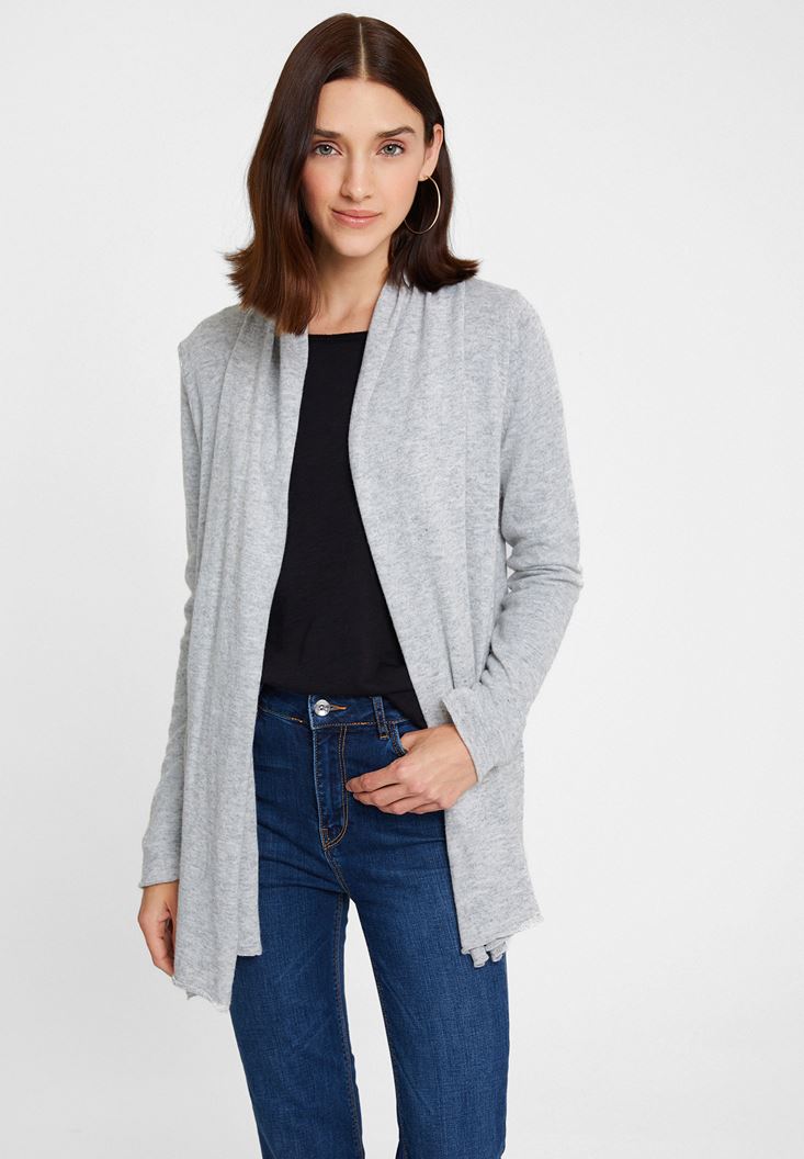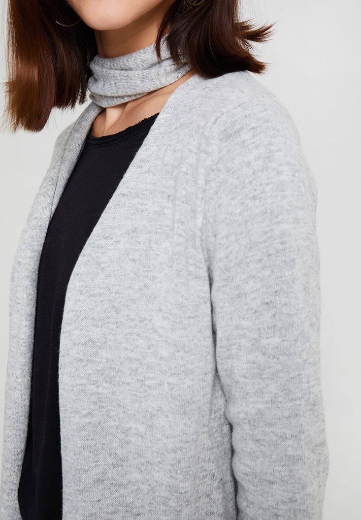 • Bayan Gri Uzun Kollu Yaka Detaylı Hırka