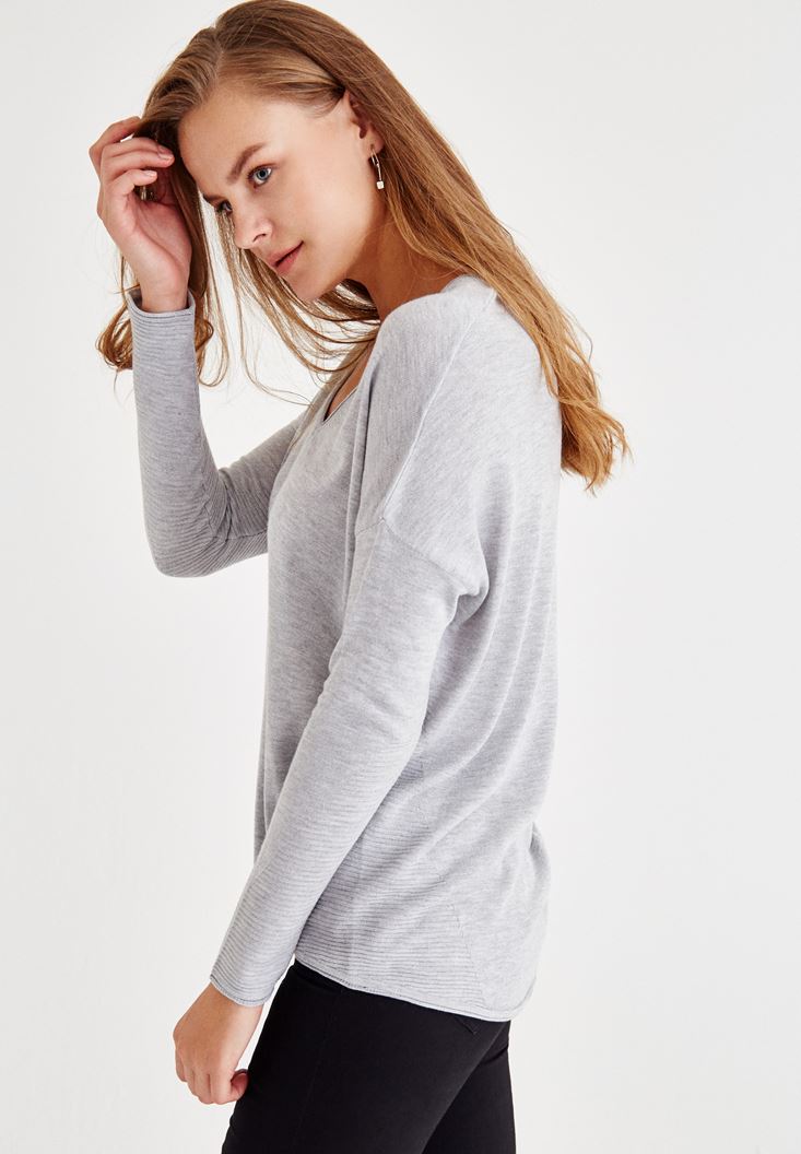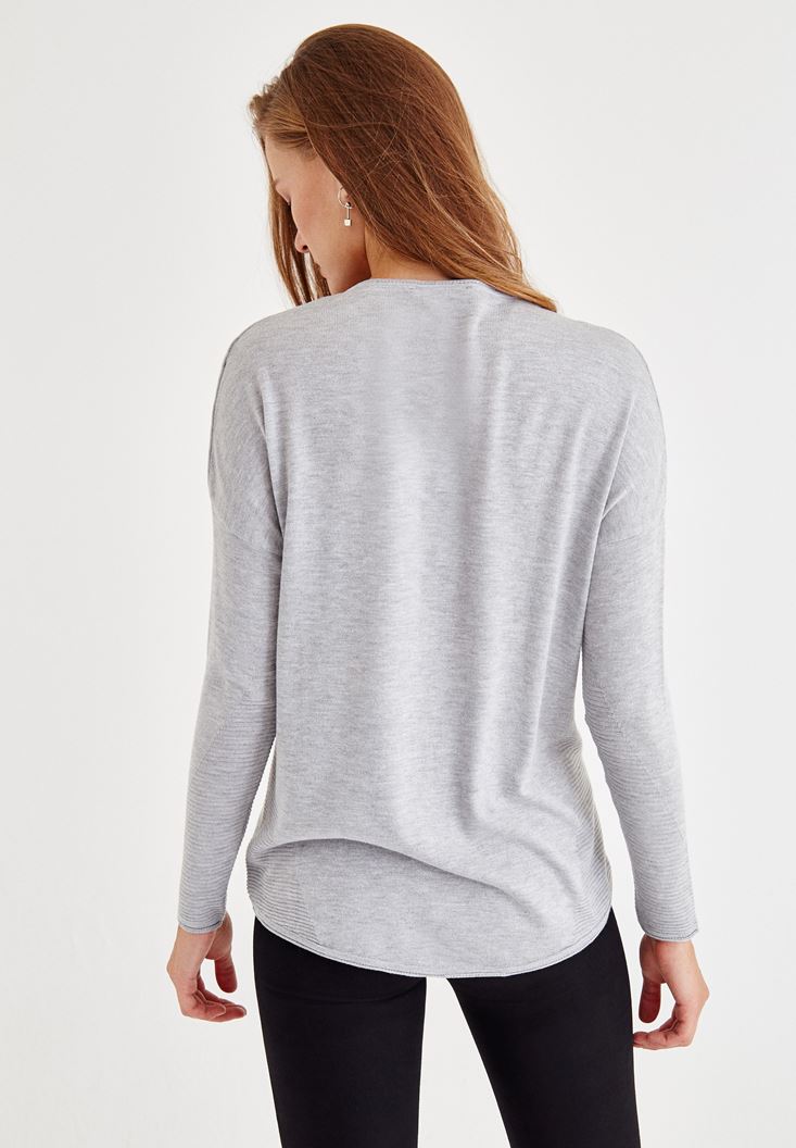 Gri Uzun Kollu Yanları Detaylı Triko