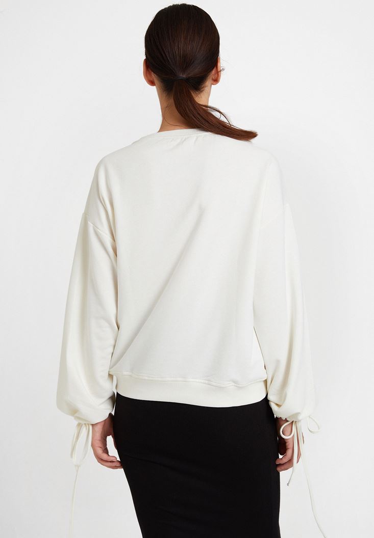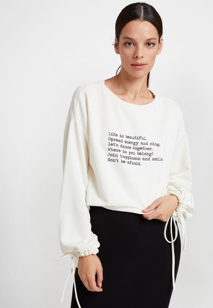 • Bayan Krem Uzun Kollu Yazı Detaylı Sweatshirt