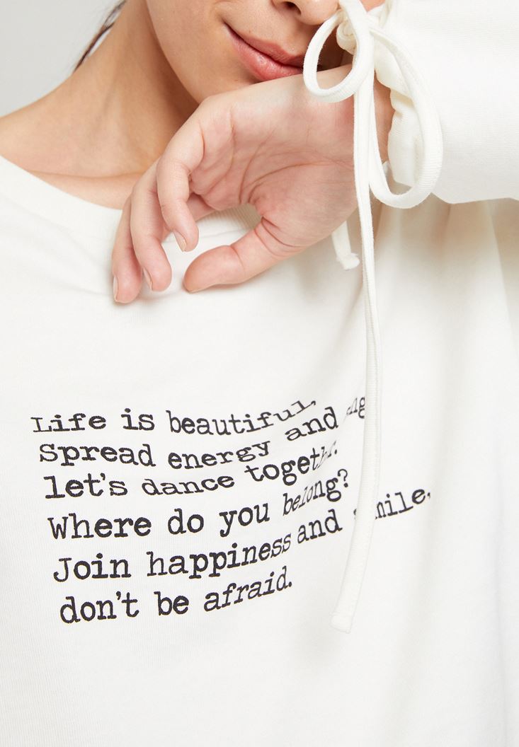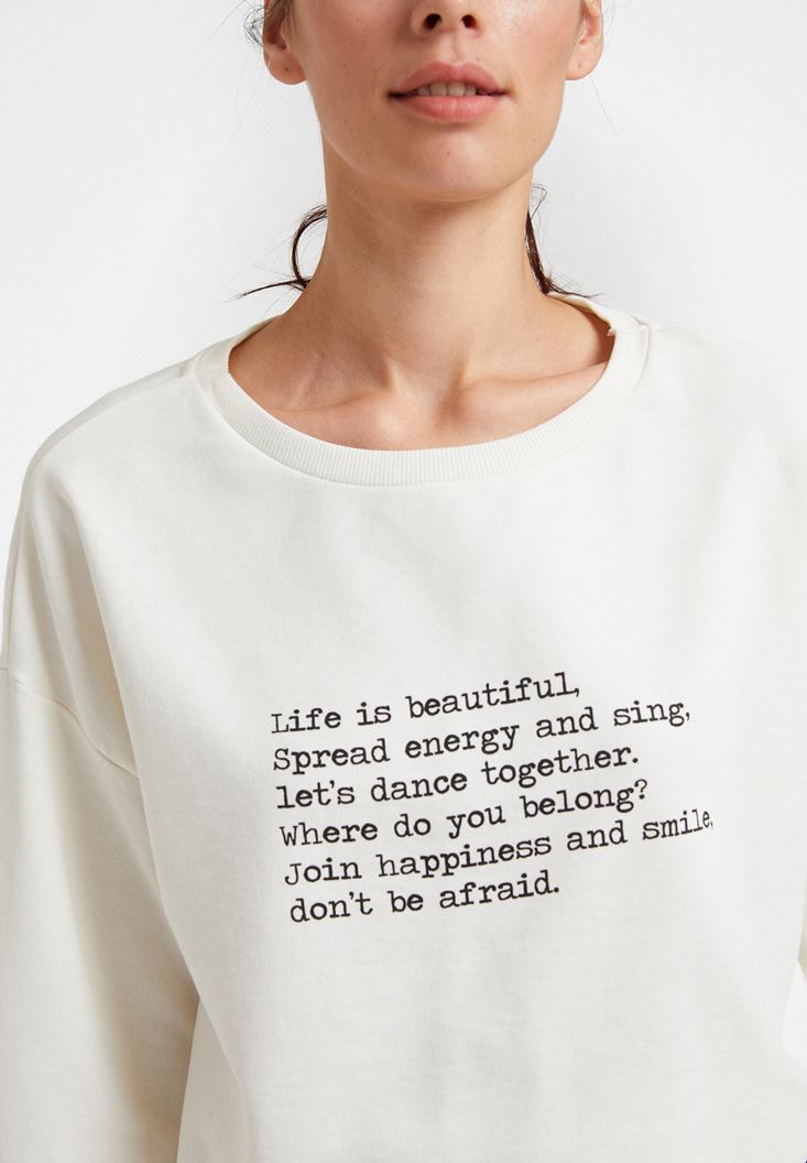 Krem Uzun Kollu Yazı Detaylı Sweatshirt