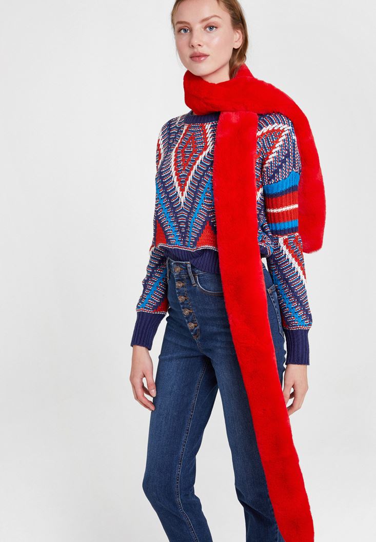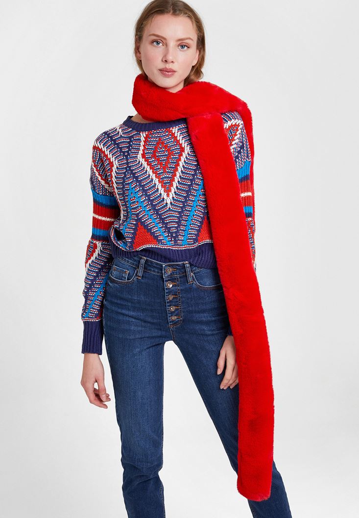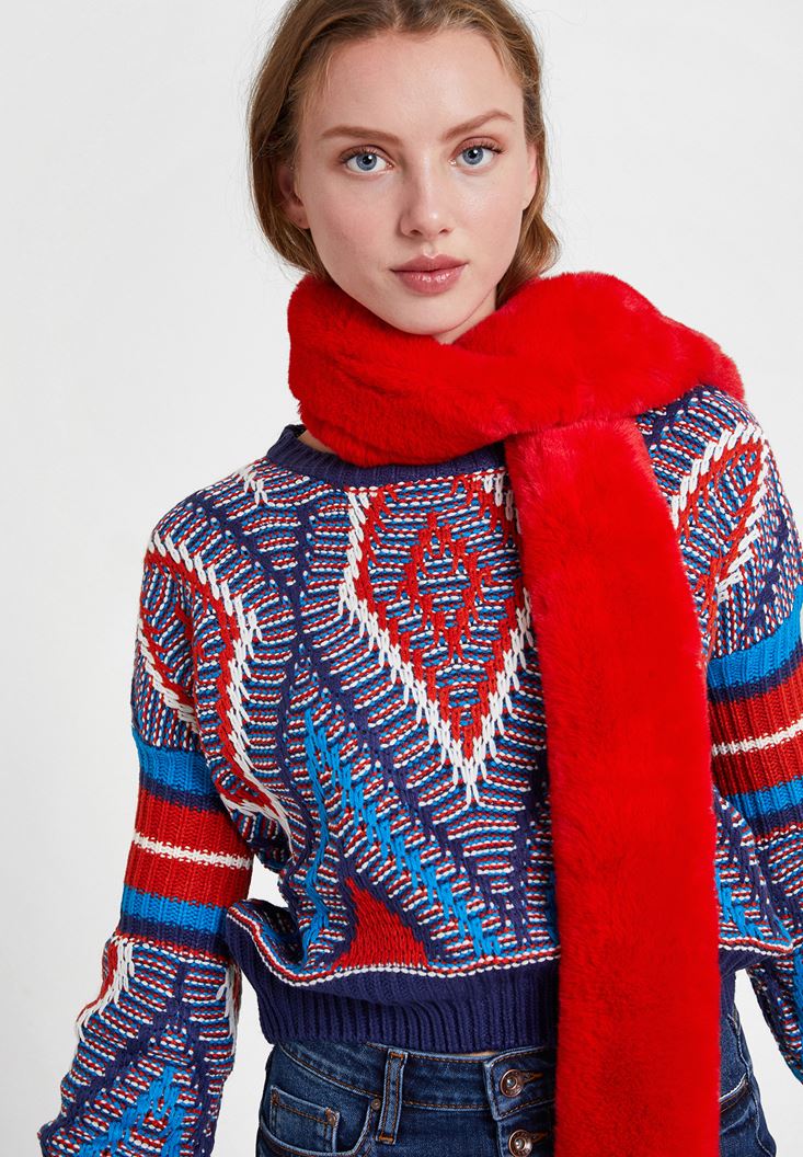 • Bayan Kırmızı Uzun Suni Kürk Şal