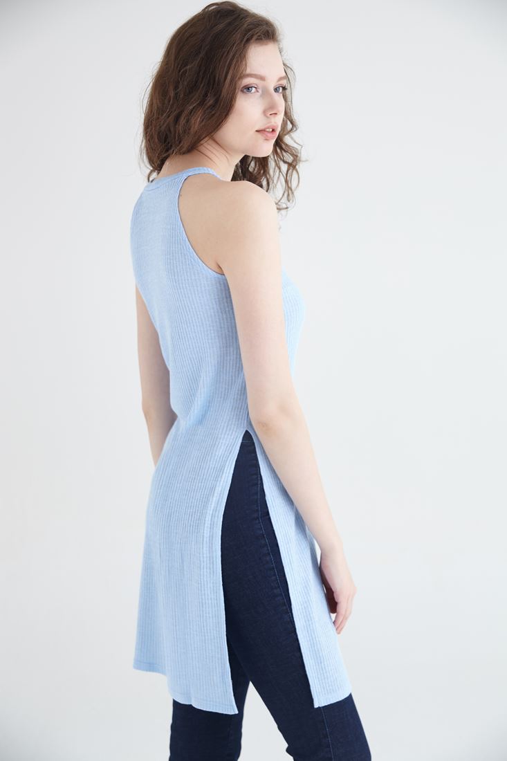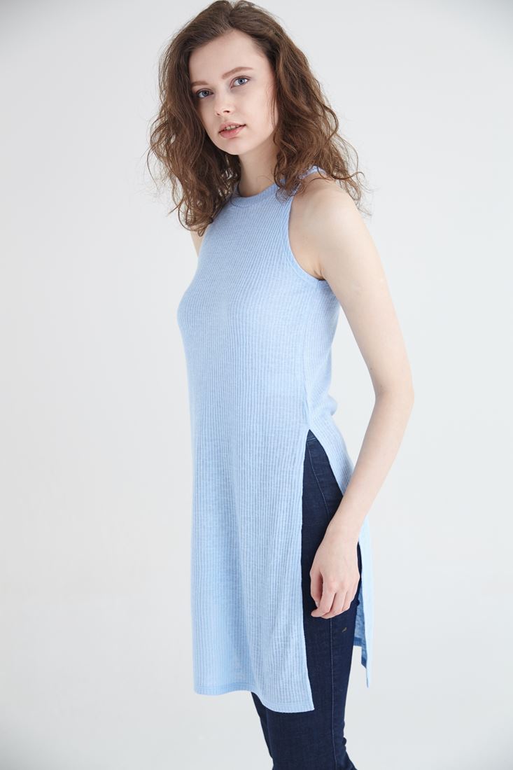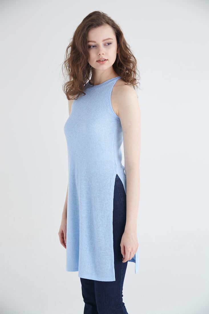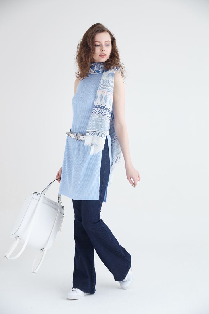 • Bayan Mavi Uzun Yırtmaçlı Bluz
