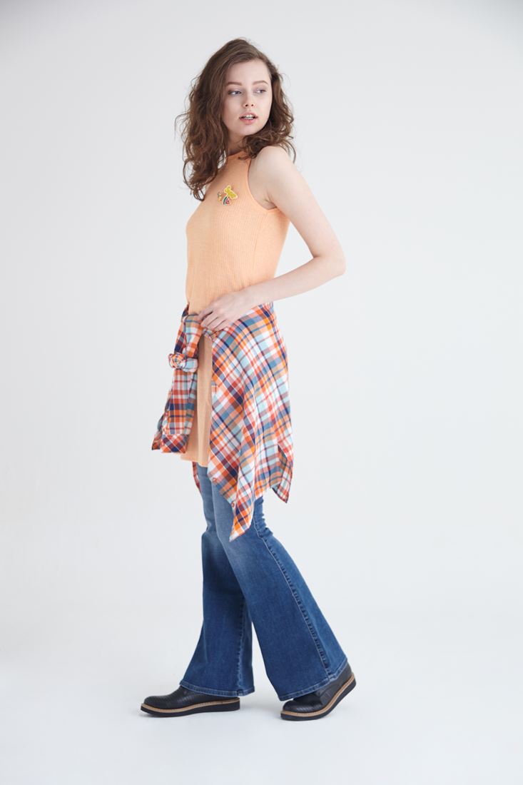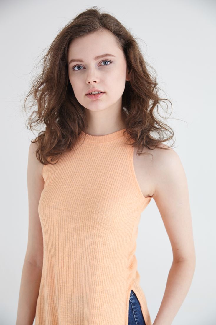 Turuncu Uzun Yırtmaçlı Bluz