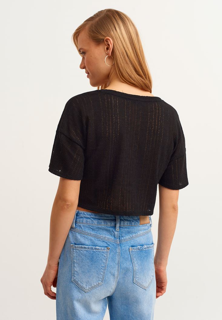 • Bayan Siyah V-Neck Ajurlu Crop Bluz
