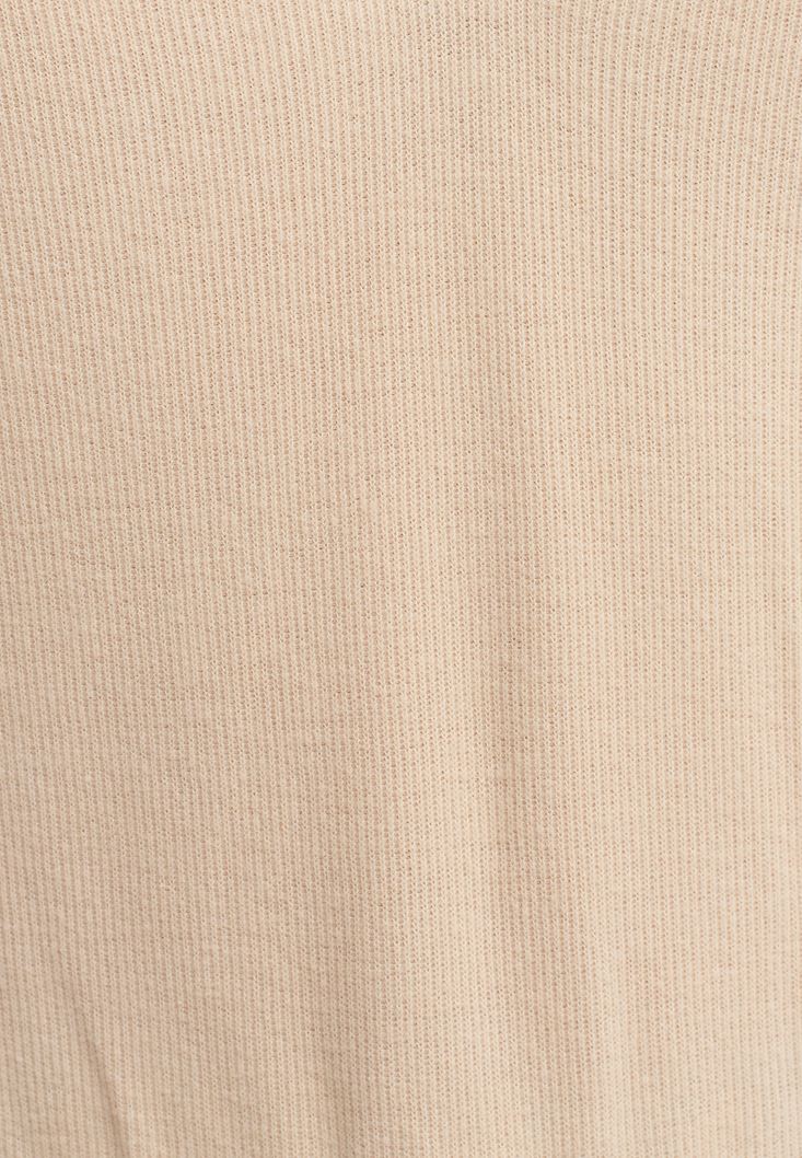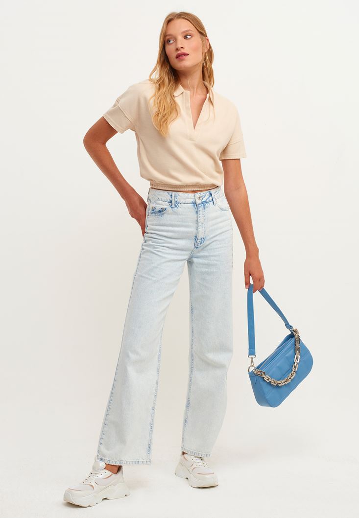 Açık Krem V-Neck Crop Bluz