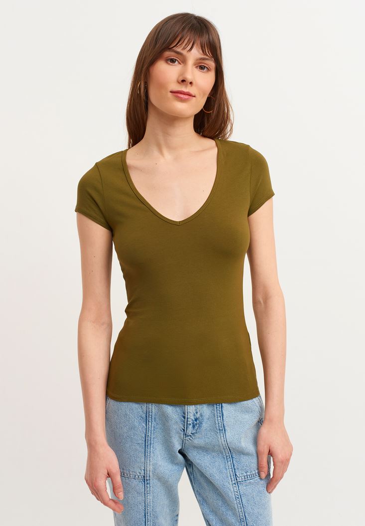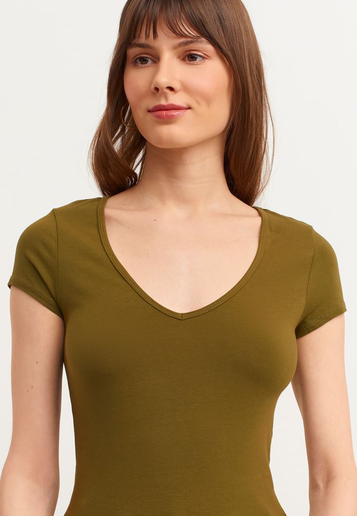 Pamuklu V-Neck Tişört