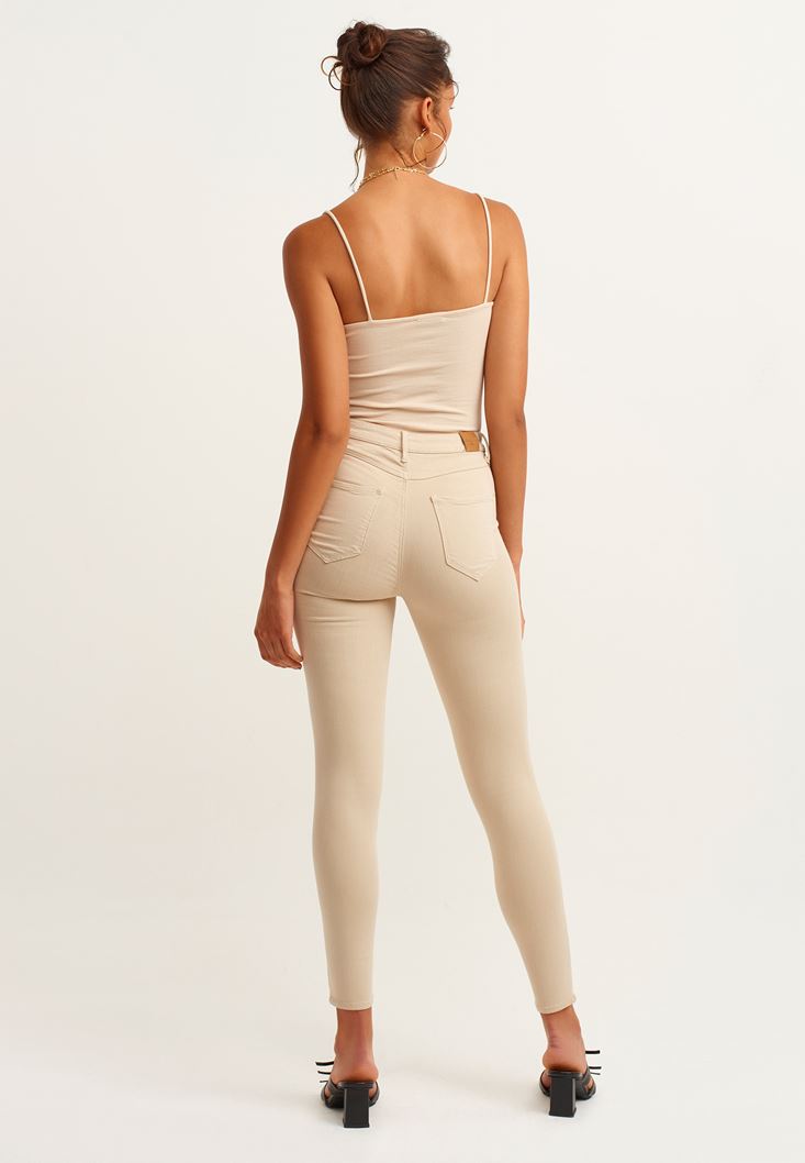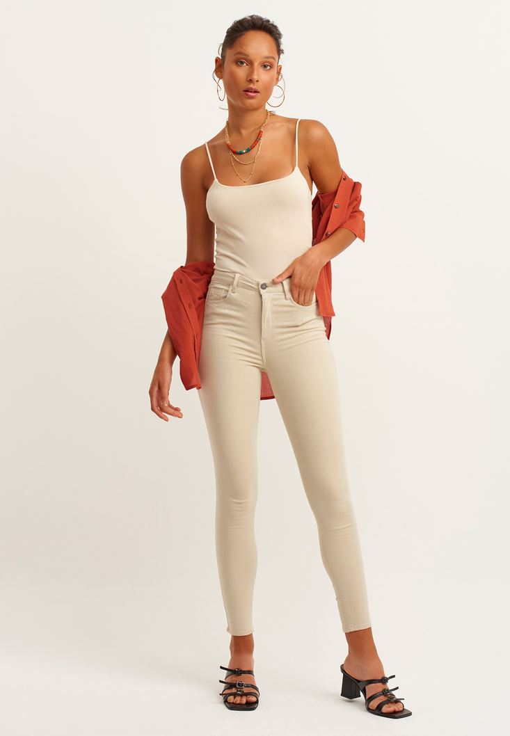 Boğazlı Triko ve Skinny Pantolon Kombini