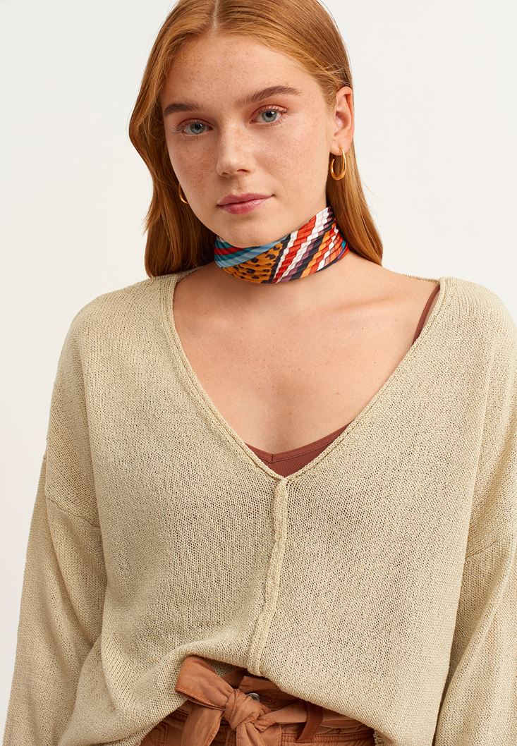 • Bayan Bej V-Neck Triko