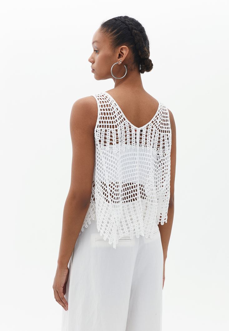 %100 pamuk içerikli doğal doku, V yaka, ajurlu örgü, bedenden uzak relax fit, kalın askılı, etek ucu asimetrik kesim.