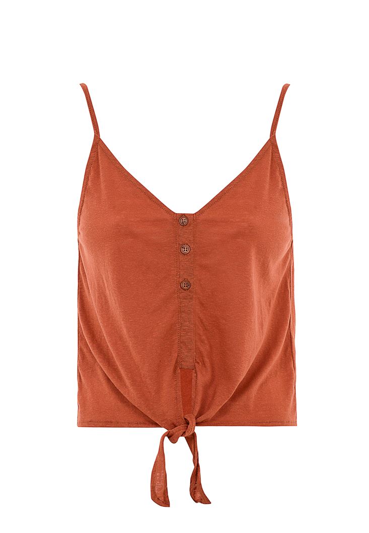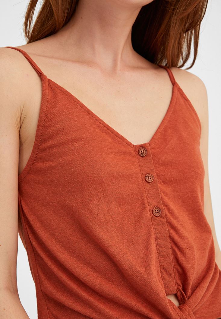Kahverengi V Yaka Bağlama Detaylı Atlet