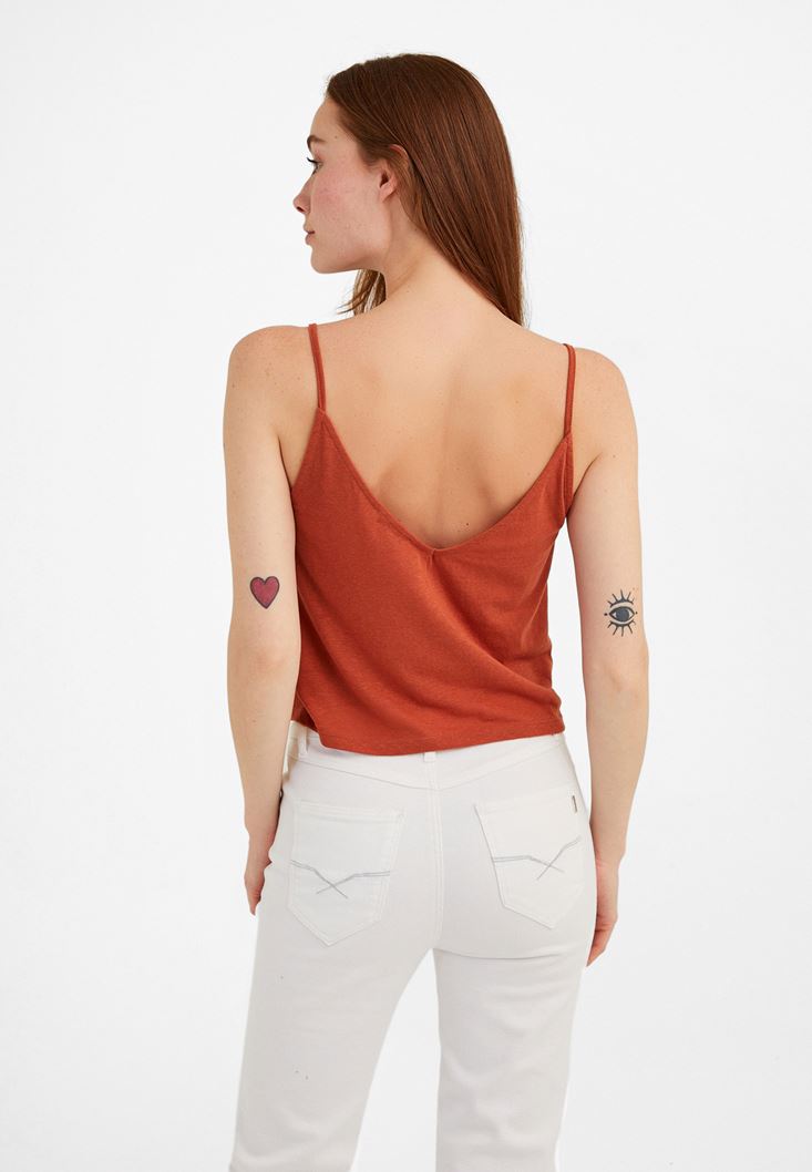 V Yaka Bağlama Detaylı Alet modeli salaş görüntüsü, zarif detayları ve iddialı tasarımı ile kombinlerinizi baştan aşağıya değiştirecek parçalardan birisi. Geniş V yaka kesimi ile boyun dekoltesini etkileyici bir şekilde ön plana çıkaran kadın atlet modelinin sırt kısmında yer alan, V kesime sahip derin dekolte tasarımın dikkat çekiciliğini başarılı bir şekilde destekliyor. İnce askıları ve dökümlü kesimi ile sadeliğini koruyan tasarım yaka hizasından aşağıya doğru kullanılan 3 adet düğme ve belden bağlama detayı ile hareket kazanıyor. Pamuk lifinin nefes alan yapısı sayesinde konforlu bir kullanım deneyimi sunan OXXO tasarımı kadın atlet, farklı tarzlara sahip kombinlerde, dilerseniz dikkat çekici aksesuarlar eşliğinde dilerseniz de tek başına rahatlıkla kullanabilirsiniz.