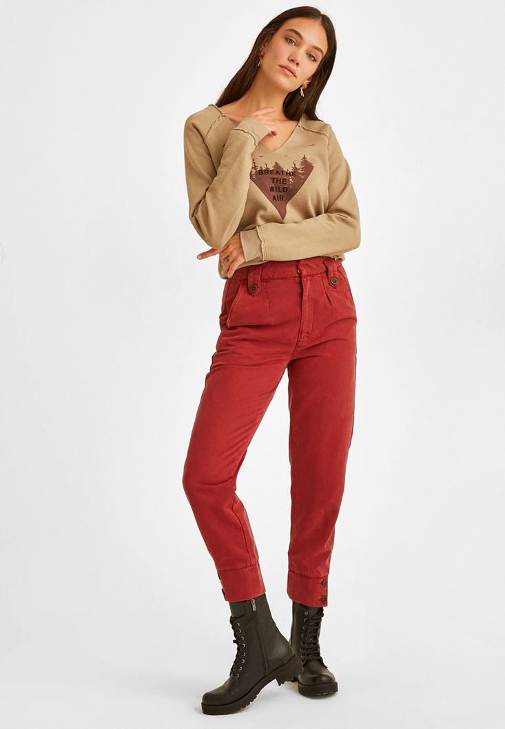 V Yaka Baskılı Sweatshirt modeli, pamuklu dokusu ve fark yaratan kesimiyle yeni sezonda sizlere sunuluyor. V yaka sweatshirt modeli, önünde bulunan hoş baskı ayrıntısı ve kesik detaylı yaka tasarımı ile göz kamaştırıyor. kadın sweat modeli crop kesimi sayesinde sunduğu genç ve dinamik görünümün yanında, dikiş detaylarıyla da oldukça ilgi çekiyor. V yaka sweatshirt modelleri ile Oxxo yüksek bel pantolon çeşitlerini kombinlerinizde rahatlıkla bir araya getirerek tercih edebilirsiniz. Deri ceketlerle iddialı kombinler yapabilmenize imkan veren kadın baskılı sweat modelleri sayesinde, tarzınızı en iyi şekilde yansıtabilirsiniz. Oxxo'nun fark yaratan tasarımlardan oluşan kadın sweatshirt kombinleri ile şıklığınızı yeni sezonda her ortam içerisinde kolaylıkla vurgulayabilirsiniz.