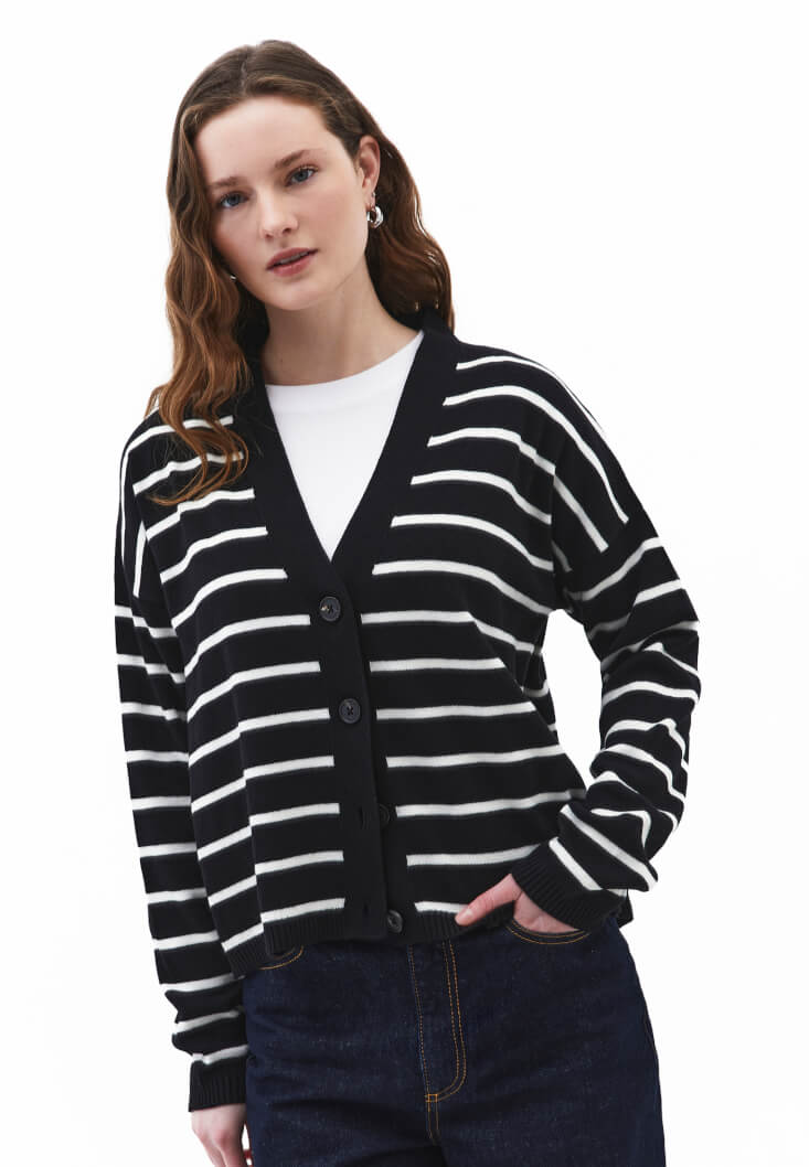 Oxxo V Yaka Çizgili Hırka 2204091809