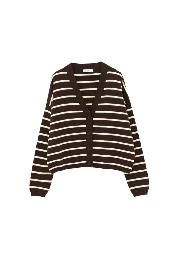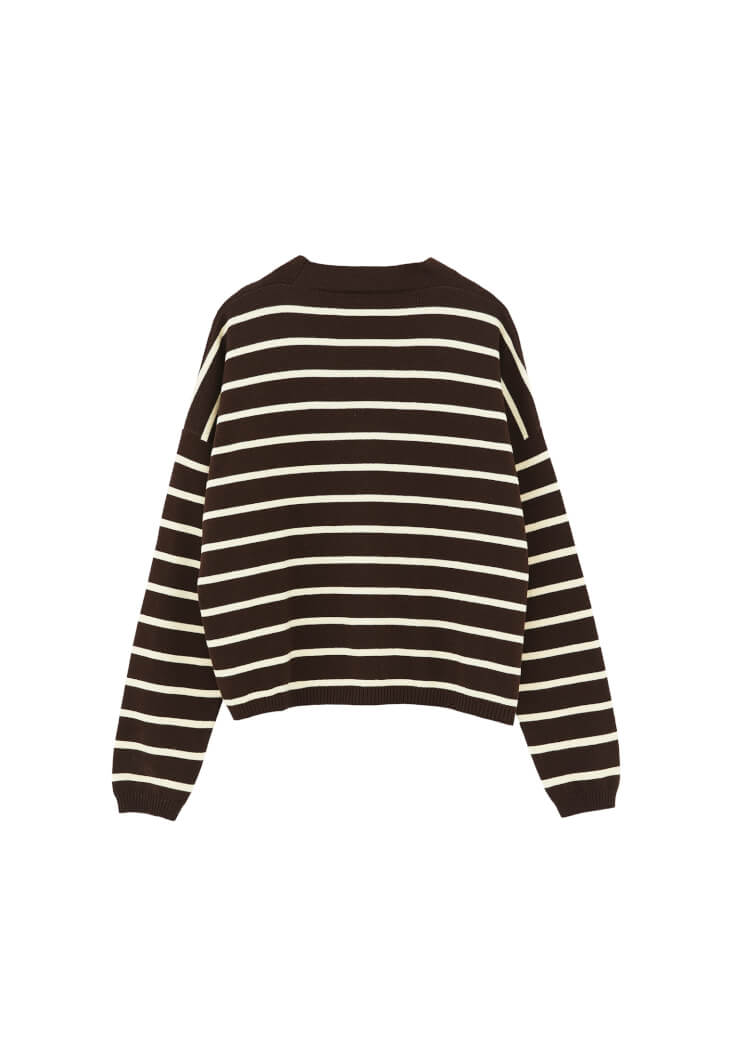 • Bayan Kahverengi V Yaka Çizgili Hırka