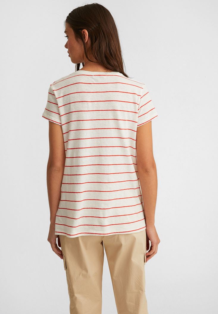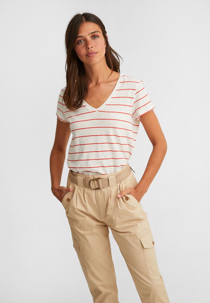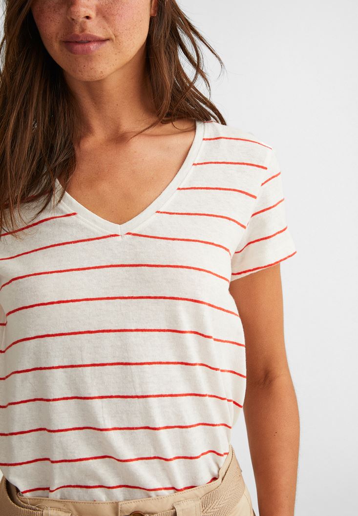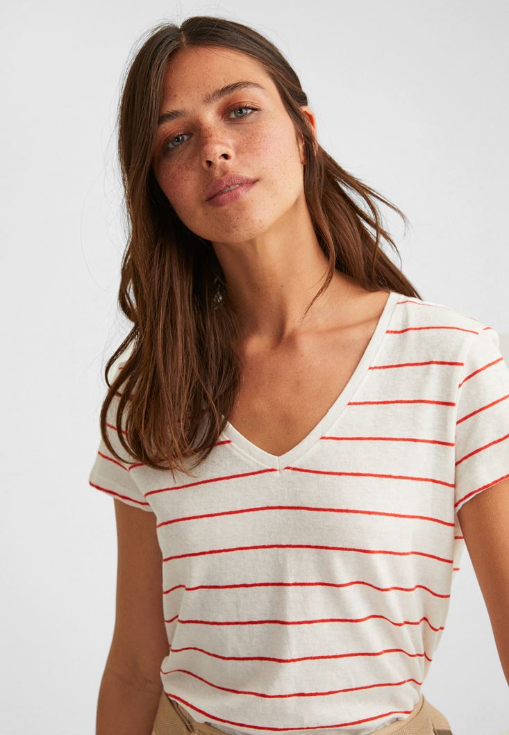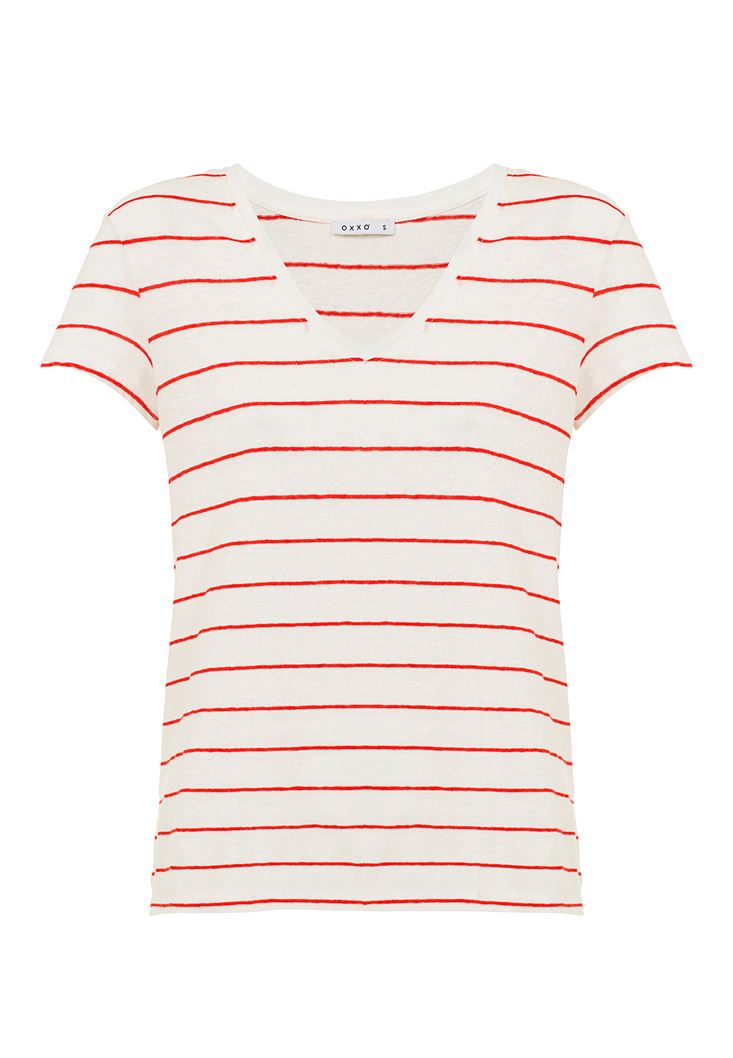 Oxxo V Yaka Çizgili Keten Tişört 2093103440