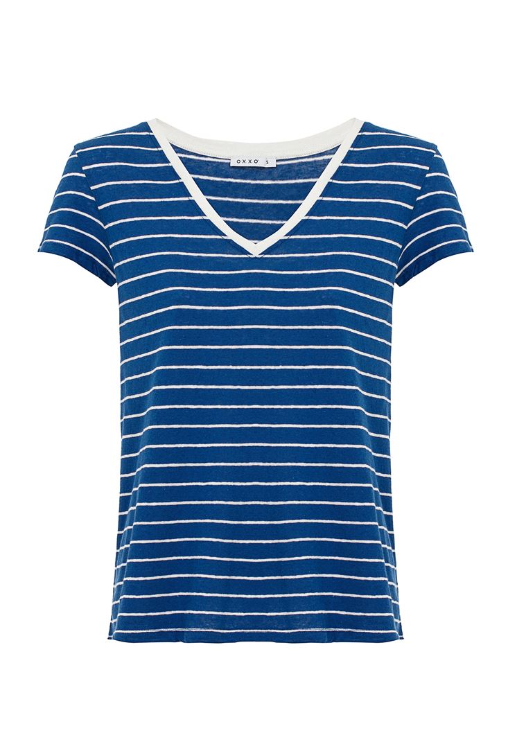 Oxxo V Yaka Çizgili Keten Tişört 2093103438