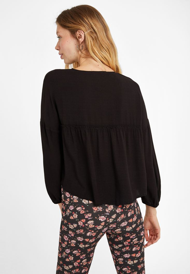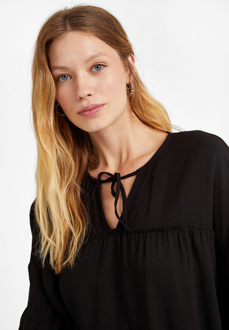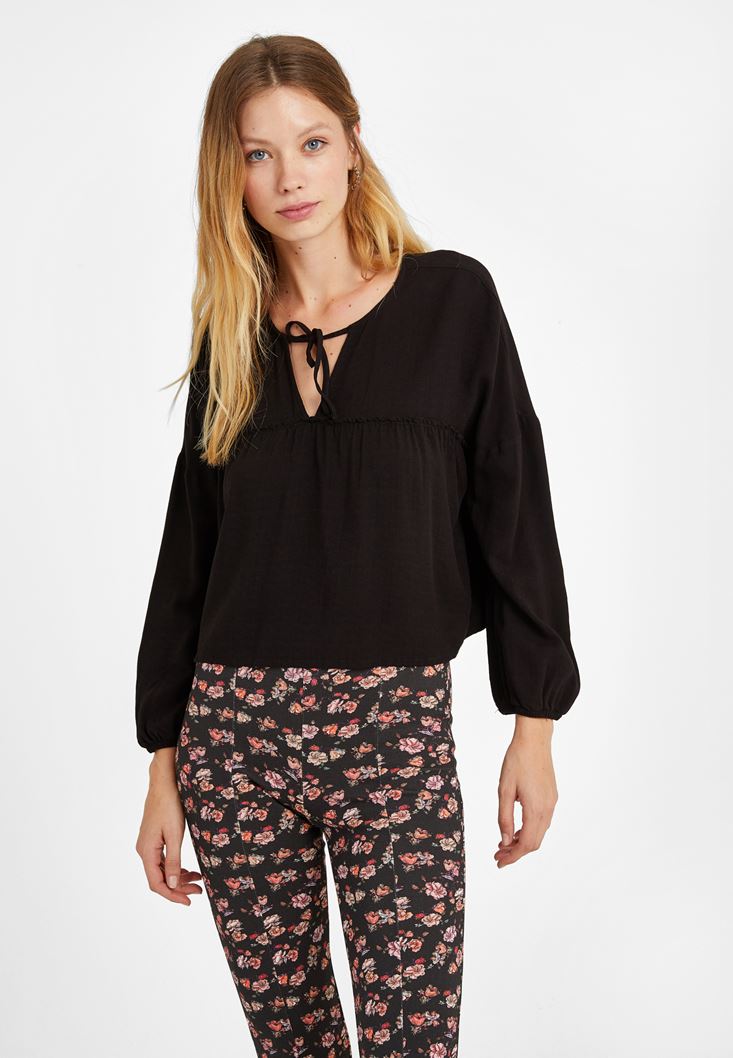 V Yaka Crop Bluz modeli, dokusu ve canlı görünümüyle sizleri etkilemeye hazır görünüyor. kadın bluz modeli, yakasında bulunan bağcık detayı ve göğüs kısmında gördüğünüz büzgü ayrıntısıyla oldukça dikkat çekiyor. Kadın bluz modeli, bilek kısmı lastikli duruşuyla nostaljik esintiler yaratırken, kombinlerinize de ayrı bir hava katıyor. Kadın bluz modeli ile kadın boru paça pantolon modelleri tercih ederek kombinlerinizle harika bir görünüm elde edebilirsiniz. Crop kesimli üstlerle çok yakışan kadın yüksek bel pantolon modellerine eşlik ettireceğiniz kadın bluz modeli, tarzınız için aradığınız ayrıntıları sizlere sunuyor. Oxxo’nun hareketli dikiş detaylarına sahip olan kadın bluz modelleri ile bulunduğunuz her ortamda stilinizle fark yaratabilirsiniz.