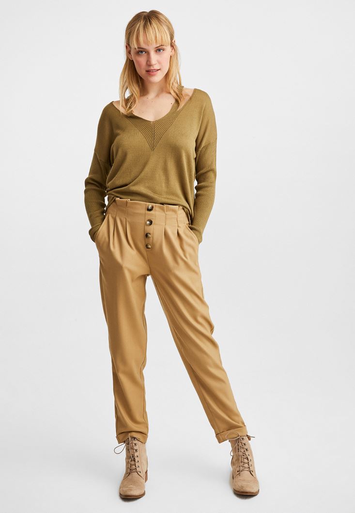 V Yaka Cut Out Detaylı Kazak modeli, viskon içerikli hoş dokusu ve salaş görünümüyle yeni sezonda sizlerle buluşuyor. kadın kazak modeli, V yaka ayrıntısıyla gelen çekiciliğin yanı sıra omuz kısmındaki kesik detaylarıyla da ön plana çıkıyor. V yaka kazak modeli, bel kısmına doğru hafif daralan kalıbı ve capcanlı renkleriyle dolabınıza dahil olmayı bekliyor. kadın kazak modeliyle sokak modası içerisinde iddialı görünümlere ulaşarak her ortamda dikkatleri üzerinize çekebilirsiniz. V yaka kazak modeli ile dar veya ispanyol paçalı pantolonlar tercih ederek farkınızı ortaya koyabilirsiniz. Deri ceketlerle veya montlarla da uyumlu olabilen kadın kazak modeliyle sezon trendlerini herkesten önce yakalayabilirsiniz. Oxxo'nun hayranlık uyandıran dokularla ve göz alıcı renklerle sizlere sunduğu kadın kazak modelleri sayesinde siz de tarzınıza çekicilik katabilirsiniz.