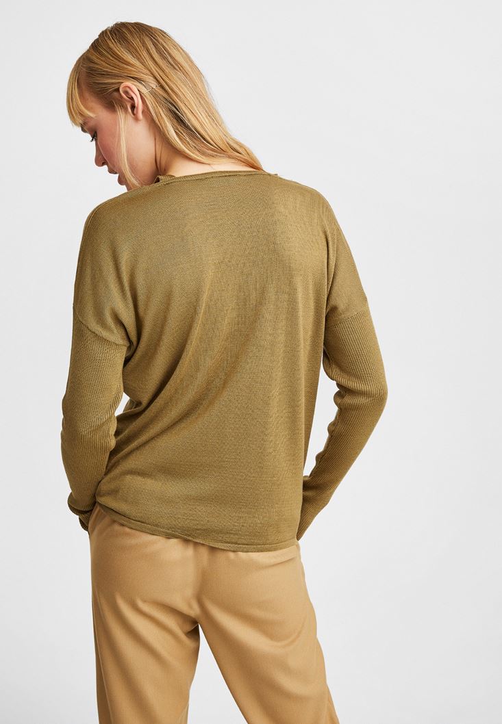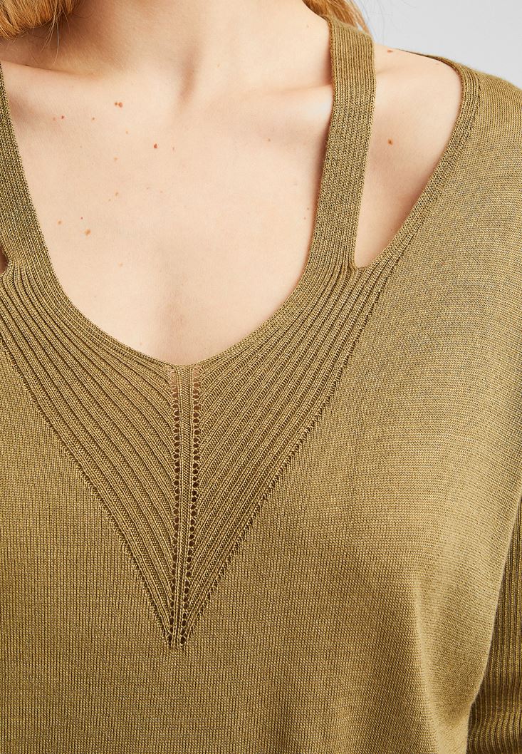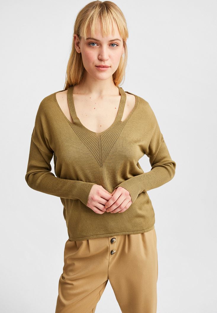 • Bayan Yeşil V Yaka Cut Out Detaylı Kazak