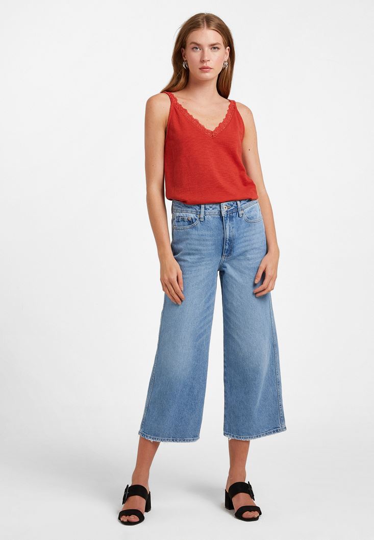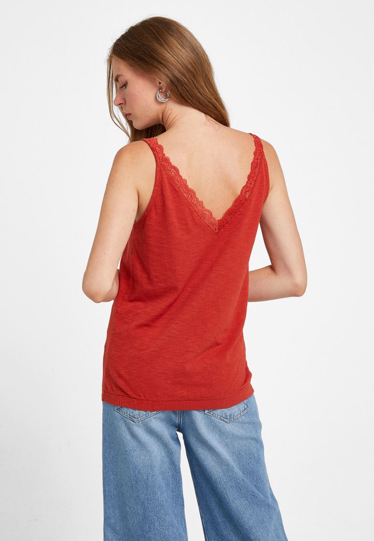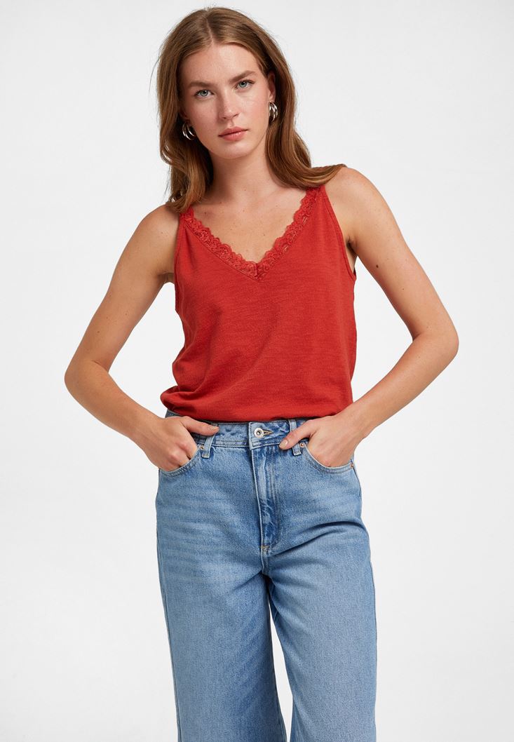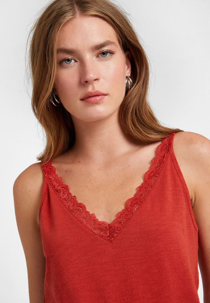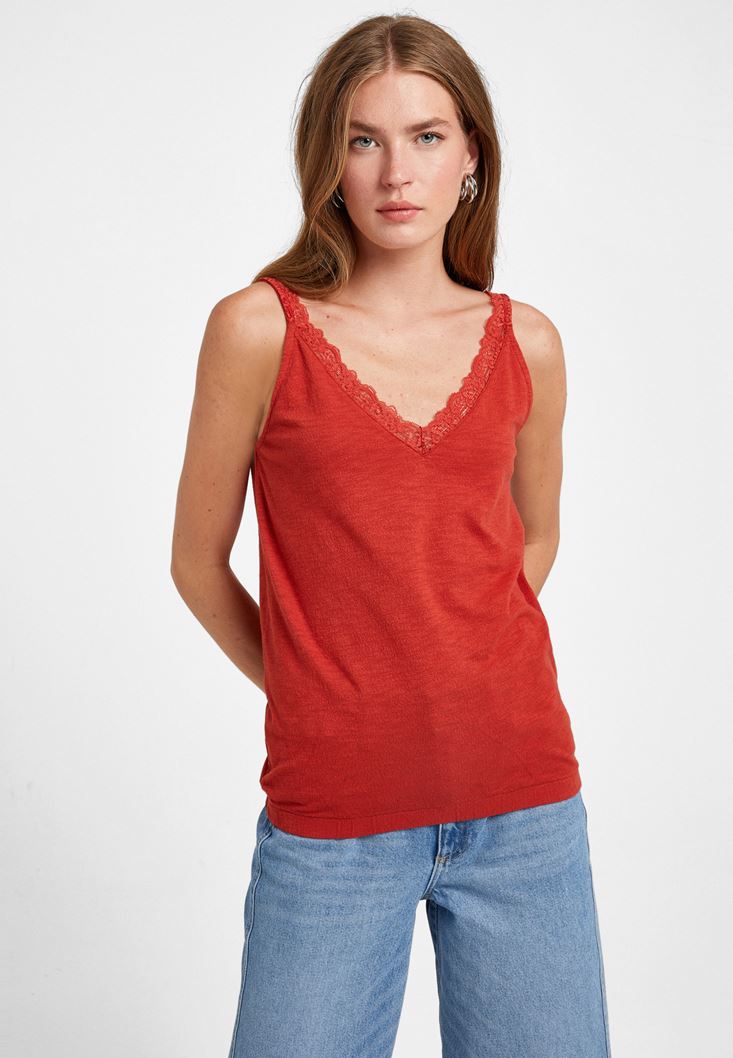 Kiremit V Yaka Dantel Detaylı Atlet