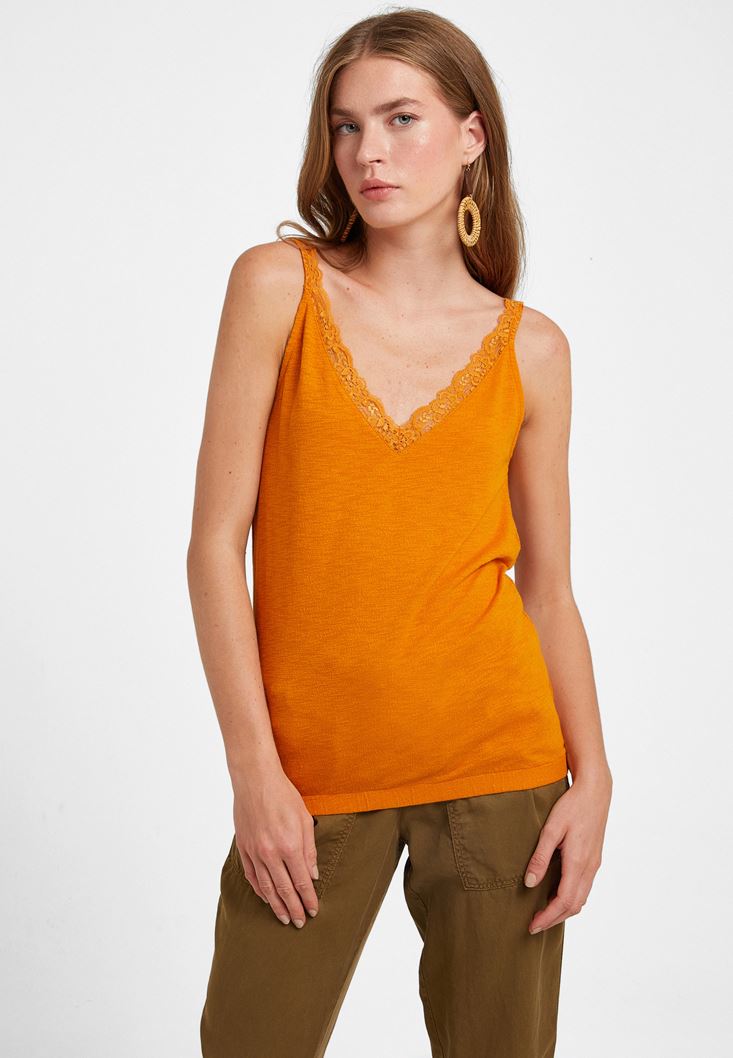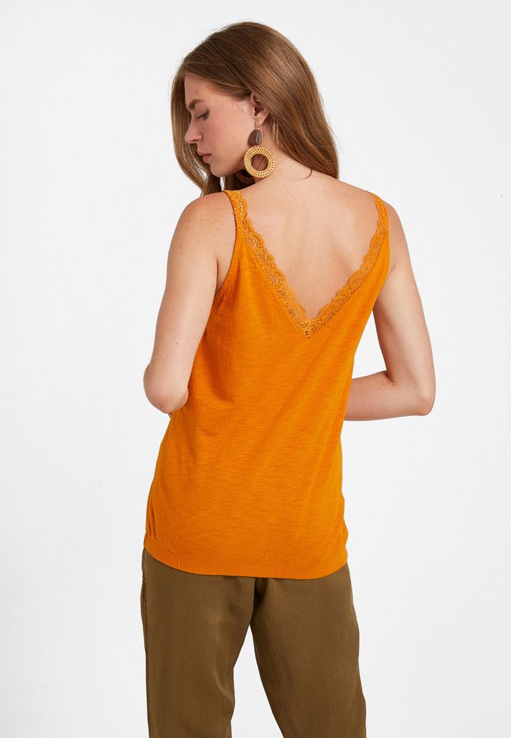 • Bayan Turuncu V Yaka Dantel Detaylı Atlet