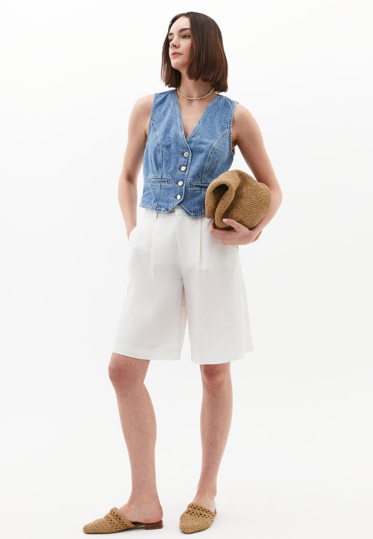 • Bayan Mavi V Yaka Denim Yelek ( TENCEL™ )