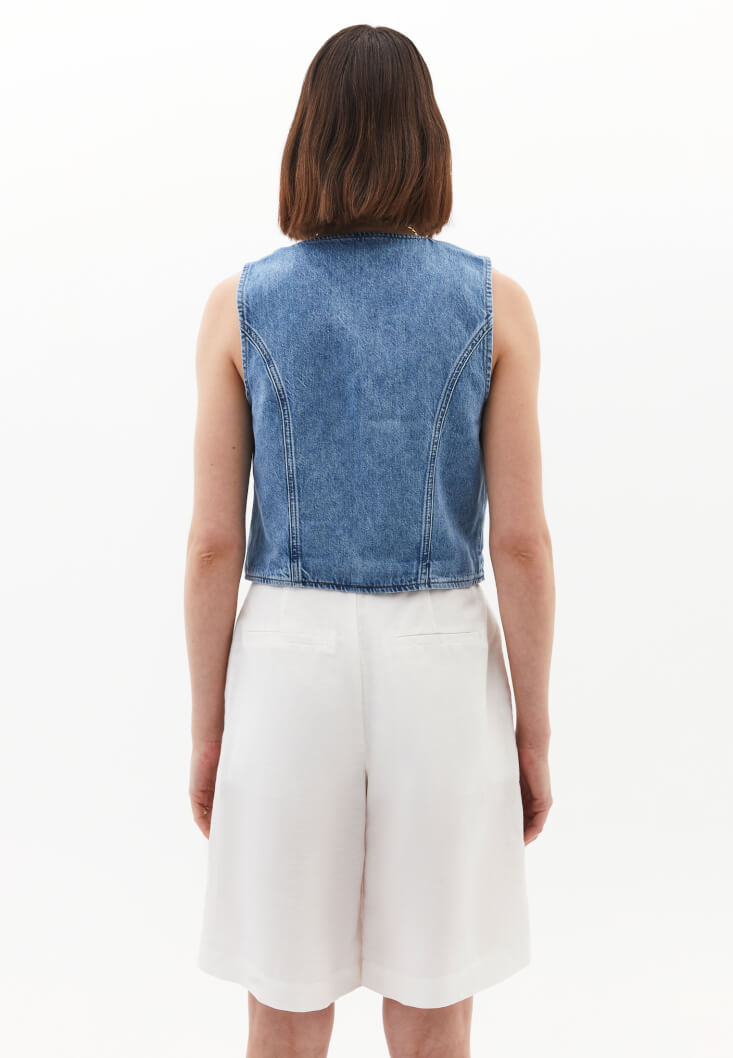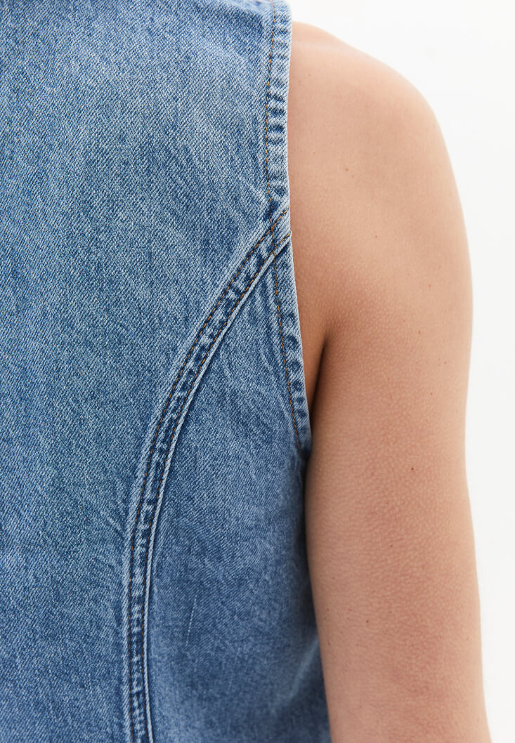Mavi V Yaka Denim Yelek ( TENCEL™ )