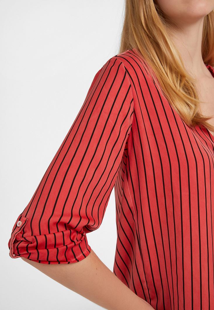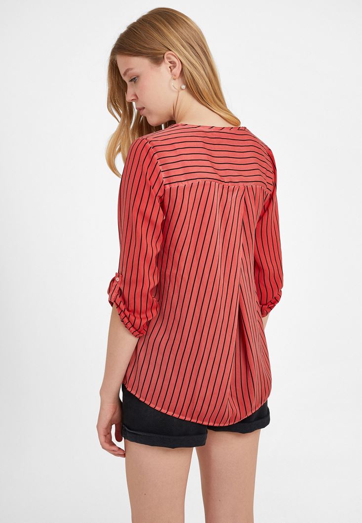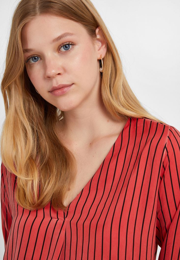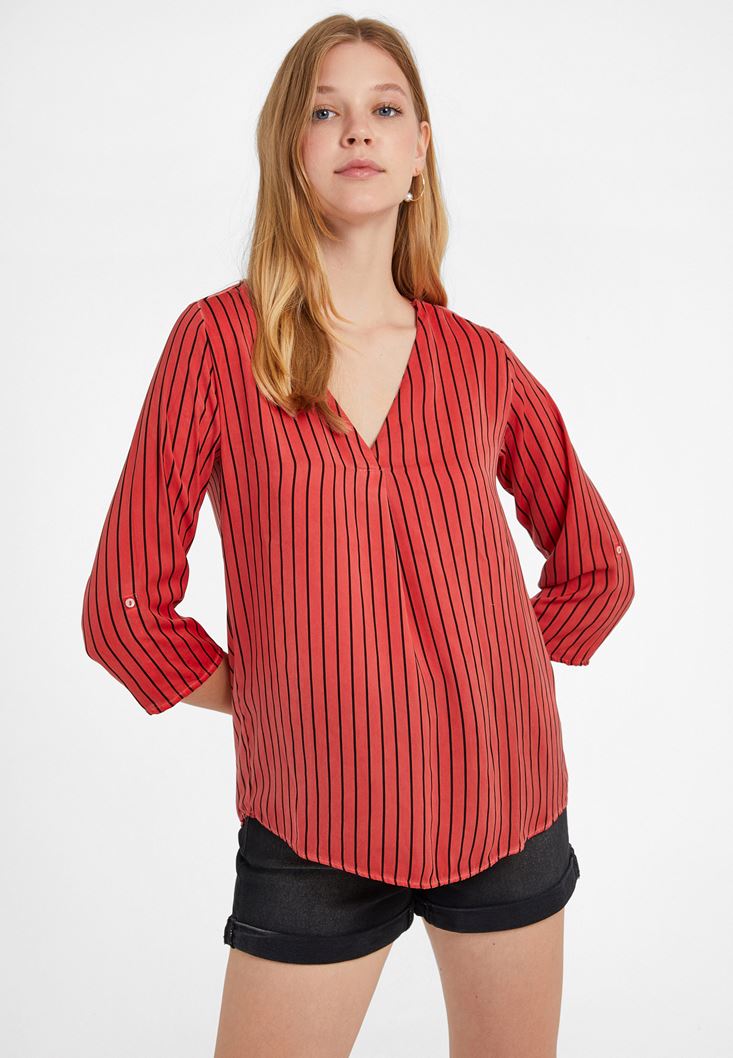 • Bayan Kırmızı V Yaka Desenli Bluz