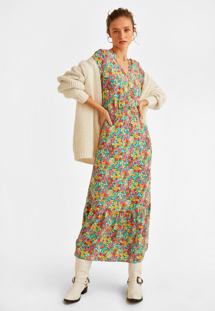 V Yaka Desenli Uzun Elbise modeli, viskon içerikli hoş dokusu ve çiçek desenli görünümü ile yeni sezonu karşılıyor. Uzun elbise modeli, V yaka ayrıntısı ve belden oturan kalıbı ile Oxxo'da öne çıkan parçalardan biri oluyor. Kadın elbise modeli, tarzınıza dilediğiniz gibi canlılık katabilmeniz için ideal bir seçenek oluyor. Oversize hırkalarla veya ceketlerle bir araya getirebileceğiniz uzun elbise modeli sayesinde tüm dikkatleri üzerinize çekebilirsiniz. Oxxo'nun göz alıcı desenlerle ve sevilen dokularla sizlere sunduğu kadın elbise modelleri ile tarzınızı kolaylıkla şekillendirebilirsiniz.