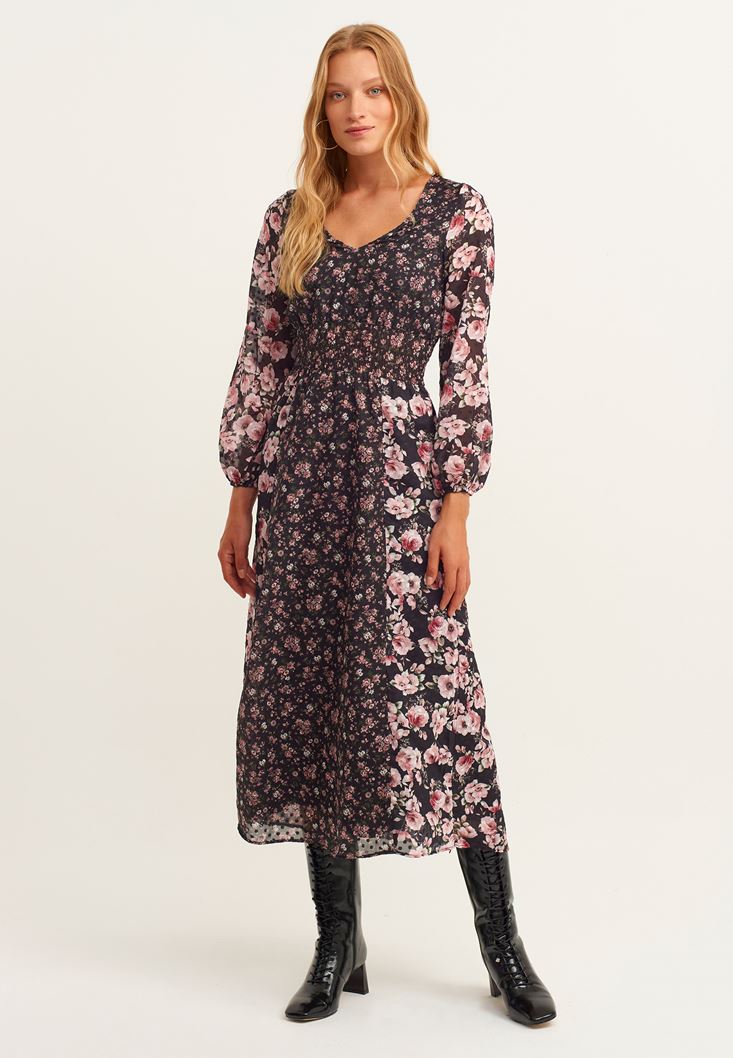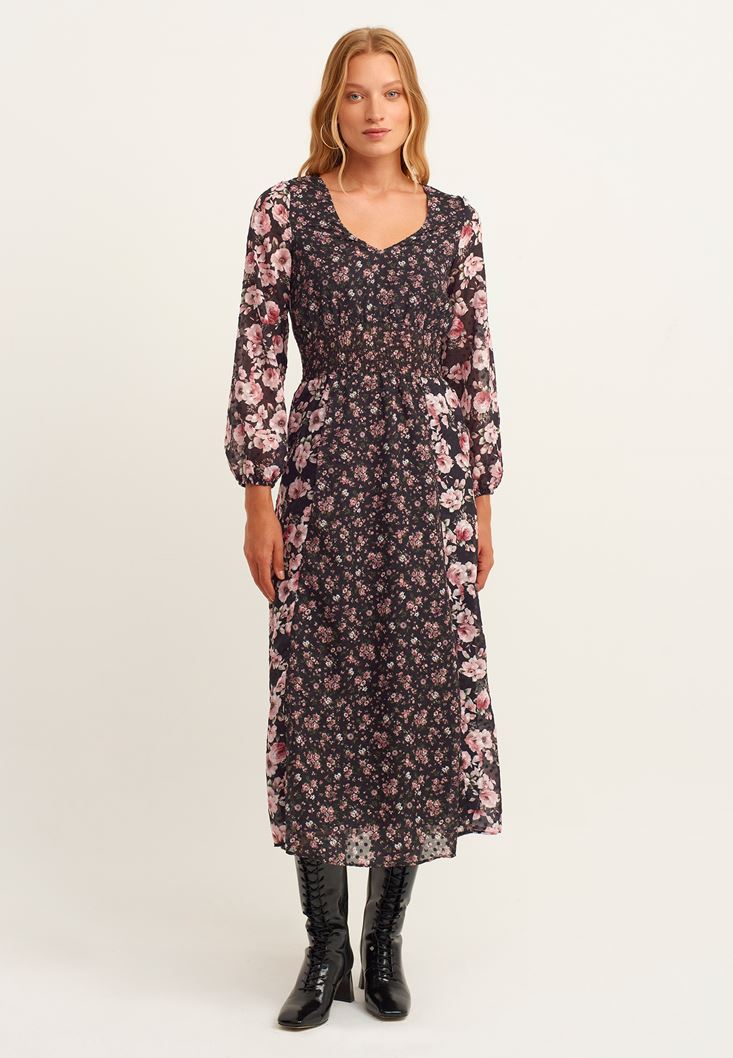 Oxxo V Yaka Desenli Uzun Elbise 209936615