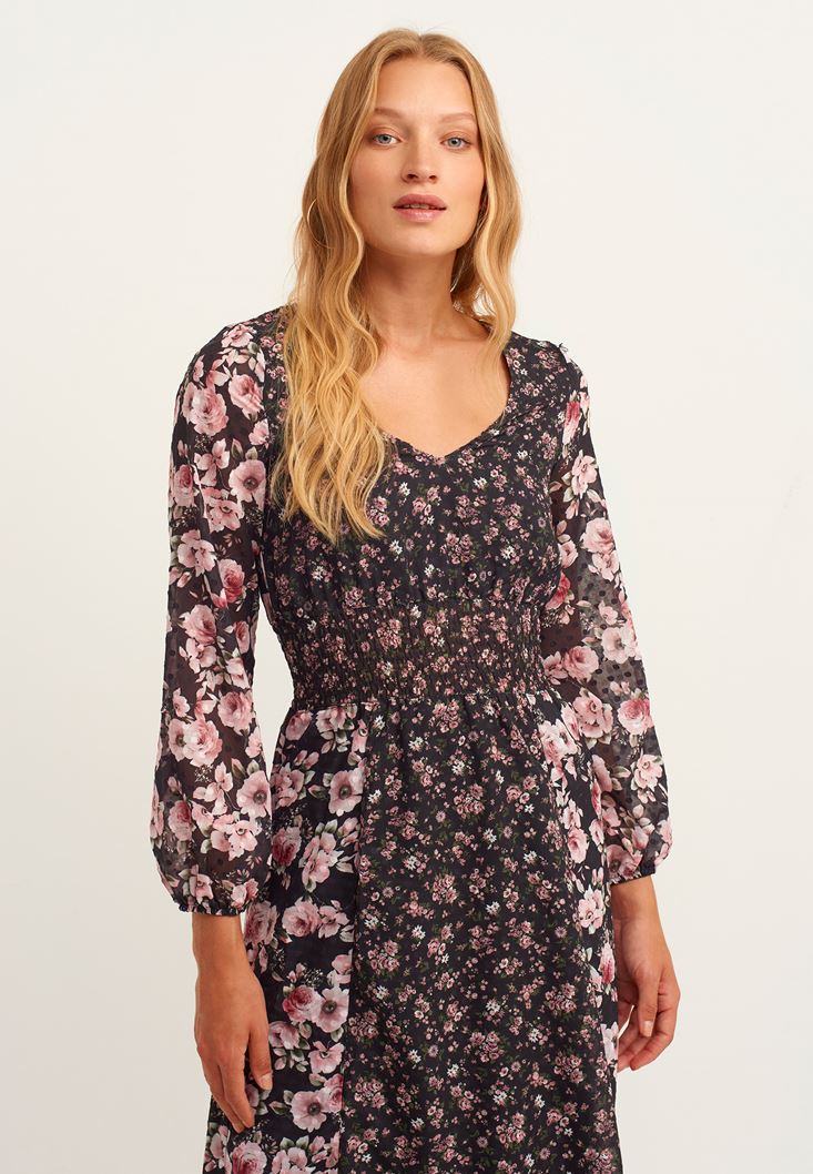 V Yaka Desenli Uzun Elbise modeli, nostaljik ve romantik esintiler barındıran hoş tasarımı ile sizlere sunuluyor. kadın uzun elbise modeli, V yaka kesiminin yanı sıra belden oturan kalıbıyla feminen bir görüntü veriyor. Kadın uzun elbise modeli, çiçek desenlerinden gelen enerjik ve hareketli görünüşüne ek olarak, hafiflik veren şifon kumaşı sayesinde göz kamaştırıyor. kadın elbise modeli ile gideceğiniz yere uygun kombinler yapabilmek için kadın topuklu ayakkabı modelleri tercih ederek, zarifliğinizi tam olarak ön plana çıkarabilirsiniz. Oxxo'nun hem özel günler hem de günlük kombinleriniz için hareketli ve ilgi çeken detaylarla sunduğu kadın elbise modelleri ile şıklığınızı son moda trendlerle tamamlayabilirsiniz.